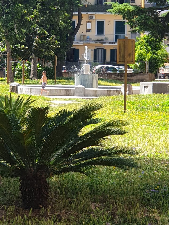 Visto il gran caldo di oggi un ragazzino ed un bambino ne hanno approfittato con tanto di giochi d’acqua, si schizzavano a vicenda, evidentemente il bagno era di loro gradimento.