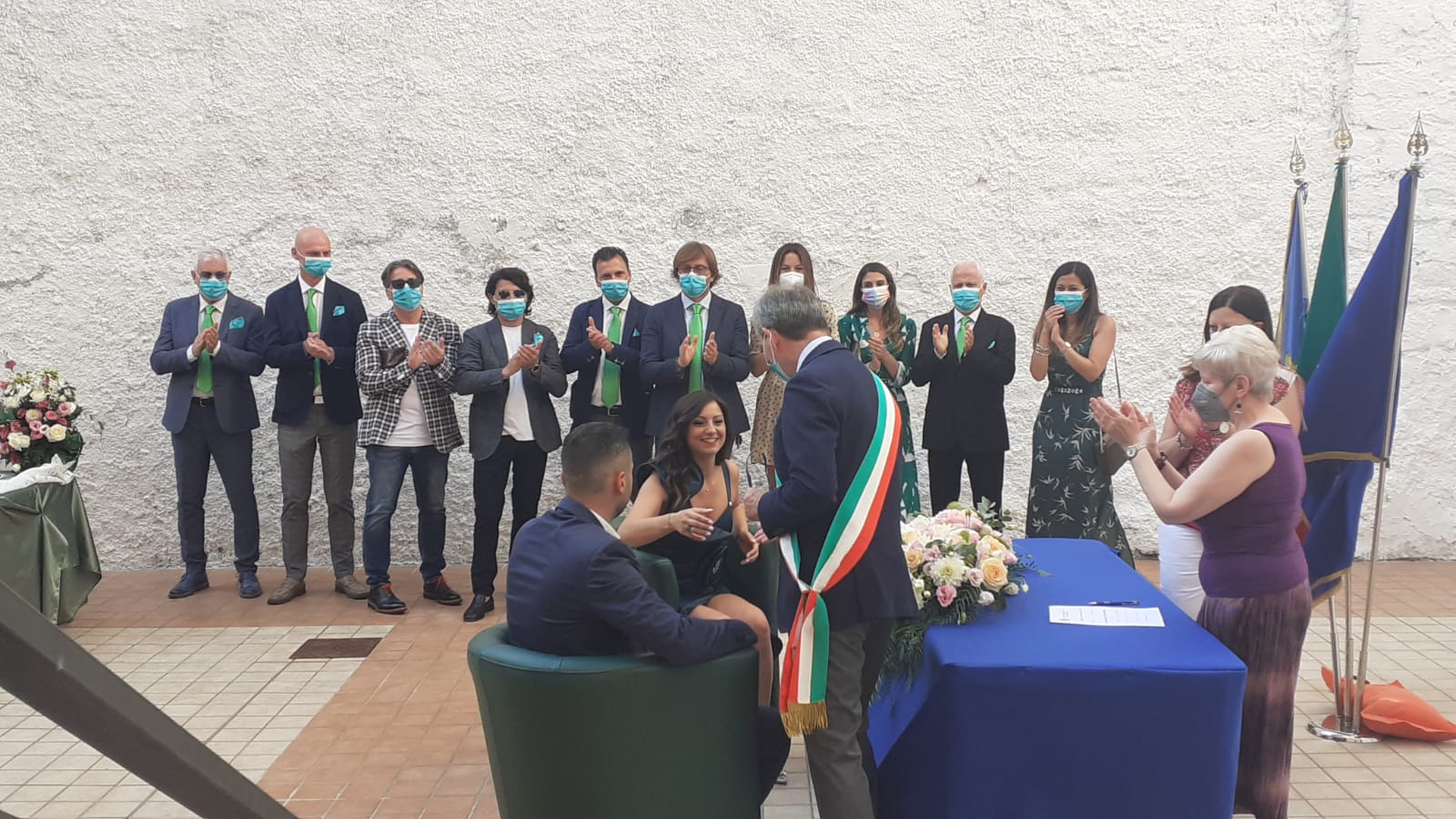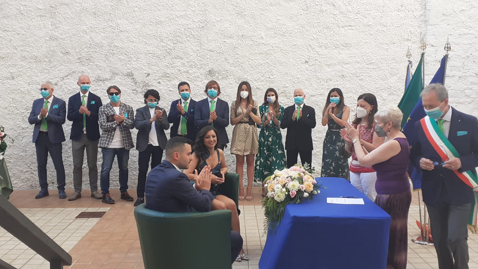 La cerimonia civile si è svolta nel pomeriggio nel cortile della casa comunale ed è stata officiata dal primo cittadino Andrea Pirozzi, supportato dai dipendenti dell’anagrafe/stato civile.