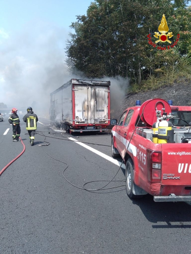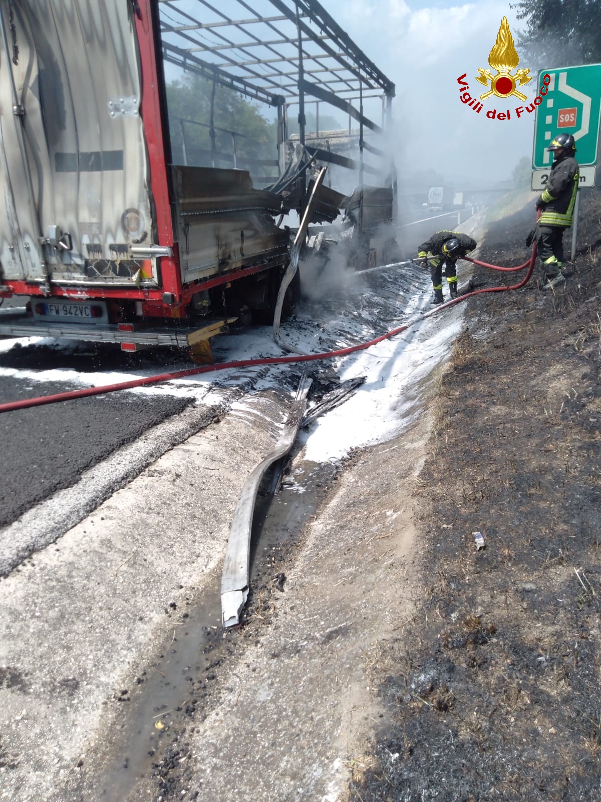Nel primo pomeriggio di oggi verso le ore 13.30 una squadra dei Vigili del Fuoco del Comando provinciale di Caserta e precisamente del distaccamento di Teano è intervenuta sull’autostrada A1 direzione Nord da Capua verso Caianiello, al km 706 in prossimità dell’area di servizio uscita Teano,allertati per un incendio di un un tir adibito al trasporto di materiale in pvc. Immediatamente giunti sul posto i Vigili del Fuoco , con l’ ausilio anche di due autobotti provenienti una dal distaccamento di Aversa e una dal distaccamento di Cassino del Comando di Frosinone, hanno spento l’incendio ormai propagatosi a tutto il veicolo.