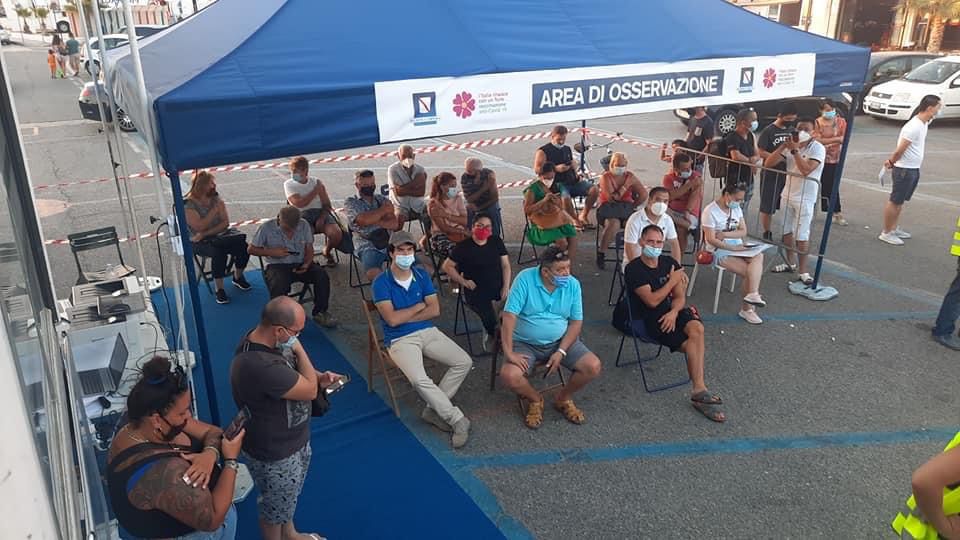 La somministrazione dei vaccini si è svolta in modo ordinato in piazza Conte, praticamente sul lungomare a ridosso degli stabilimenti balneari.