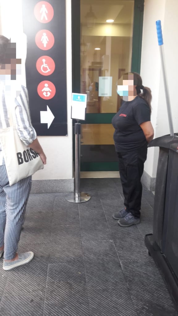 Nel frattempo gli addetti sono costretti a respingere i clienti che cercano di espletare i loro bisogni fisiologici in una giornata di grande caldo.