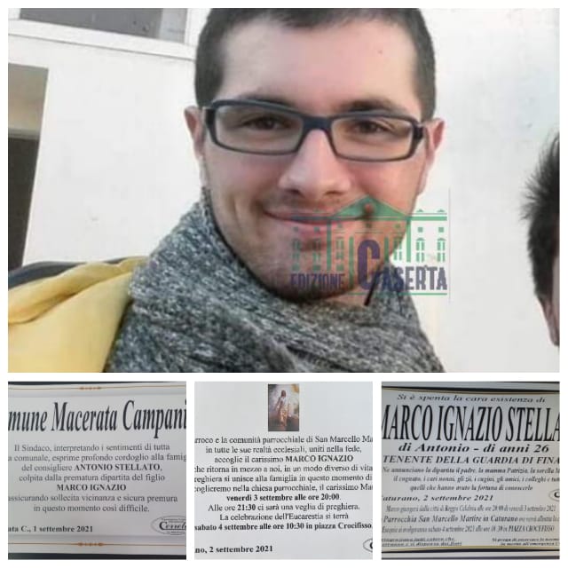 Saranno celebrati sabato nella frazione di Caturano i funerali di Marco Ignazio Stellato, il tenente della Guardia di Finanza morto all’età di 26 anni nella caserma di Reggio Calabria, dove prestava servizio presso il comando provinciale delle fiamme gialle, dopo un gesto estremo.
