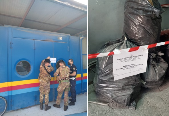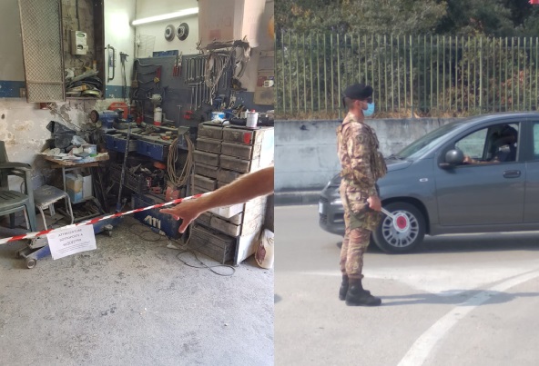 Arzano: nella mattinata del 9 settembre, 2 equipaggi dell’Esercito Italiano congiuntamente a 2 pattuglie della Polizia Municipale di Arzano, effettuavano controlli a 3 attività artigianali e commerciali, dagli accertamenti veniva sequestrata 1 autocarrozzeria (circa 120 Mq) e denunciate 2 persone. Inoltre venivano identificati 4 persone, controllati 7 veicoli di cui 1 sequestrato.