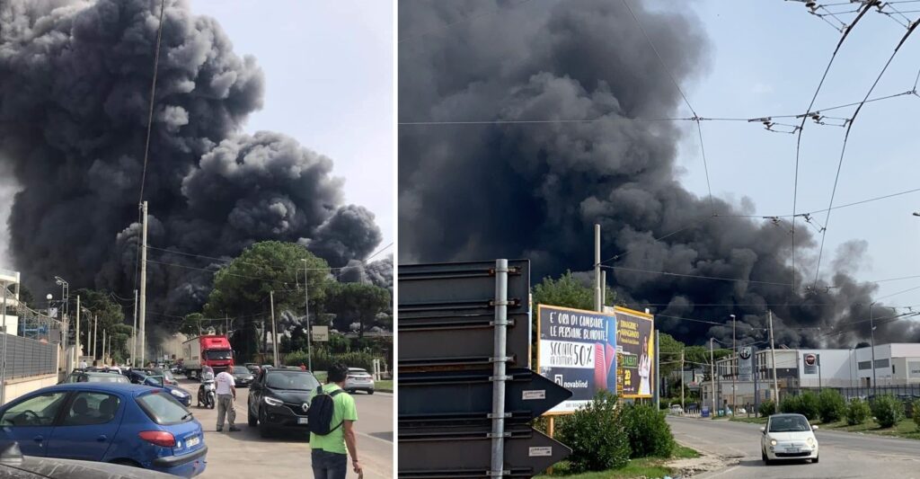 Testimoni riferiscono che stanno bruciando anche diversi imballaggi nell’area interessata: off-limits la zona dell’Appia a ridosso della svincolo di Nola-Villa Literno dove la visibilità è ridotta e l’aria è già irrespirabile. L’invito delle autorità è a rimanere a casa: i vigili del fuoco stanno staccando l’energia elettrica nella zona. Ci sono diverse squadre dei caschi rossi sul posto, mentre è confermato che per fortuna non ci sono feriti tra gli operai dell’autorimessa coinvolta dal rogo. Sul caso indagano i carabinieri del reparto territoriale di Aversa, prontamente giunti sul posto.