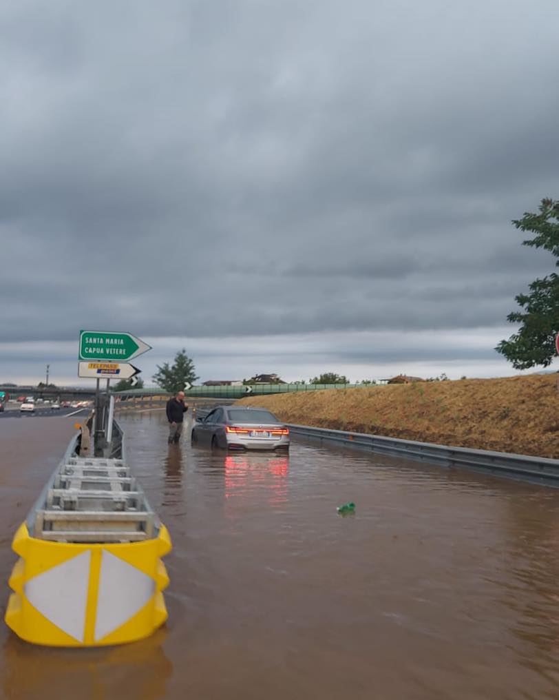 Una frana si è infatti verificata all’altezza dello svincolo di Santa Maria Capua Vetere in direzione Roma: un piccolo terrapieno ha ceduto. Il bivio per l’uscita si è rapidamente allagato. La situazione è tornata alla normalità solo in serata, dopo rallentamenti e traffico intenso.