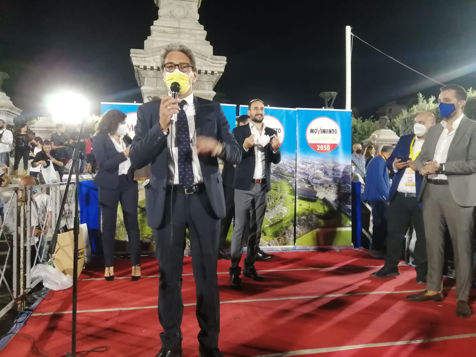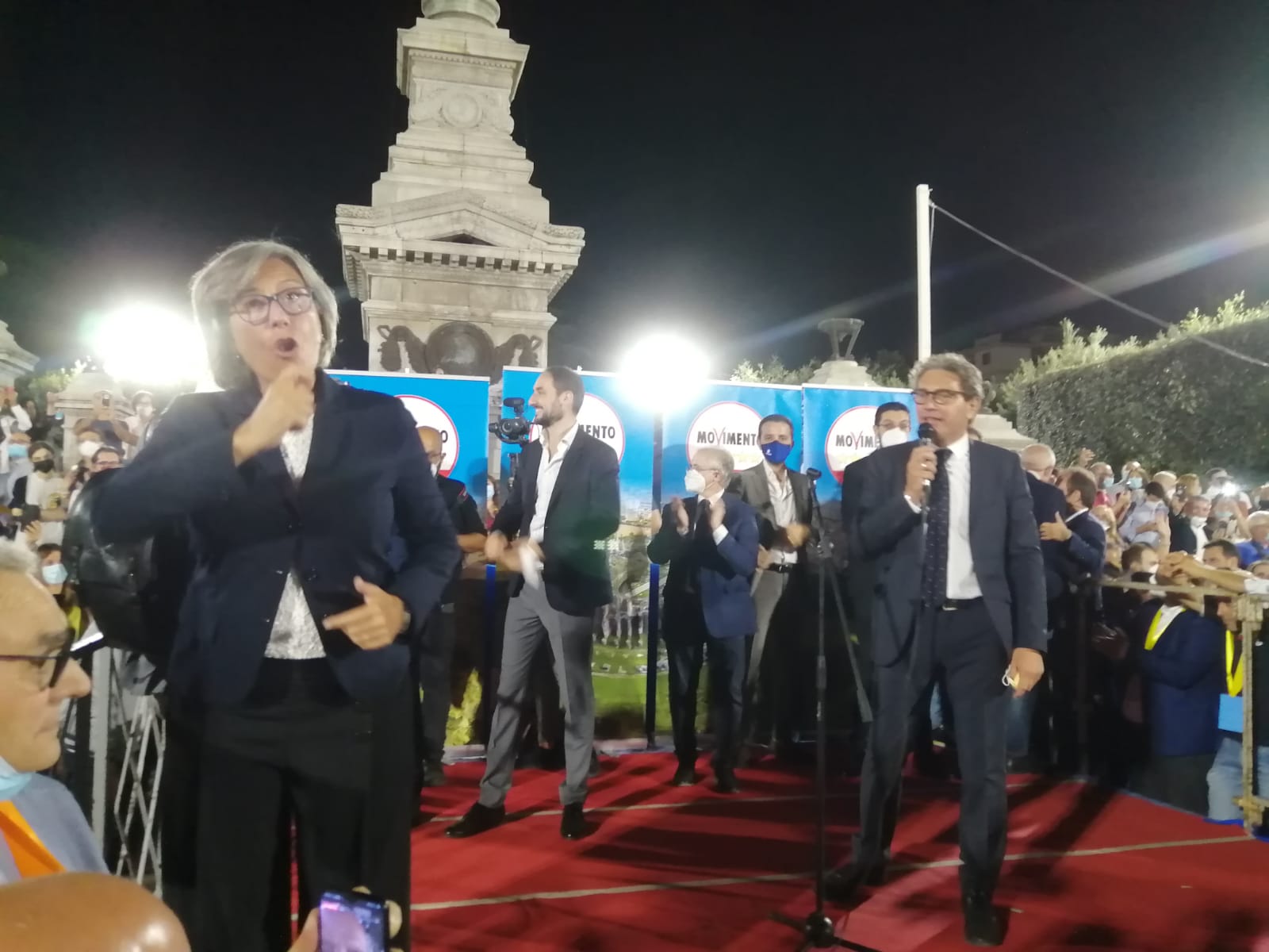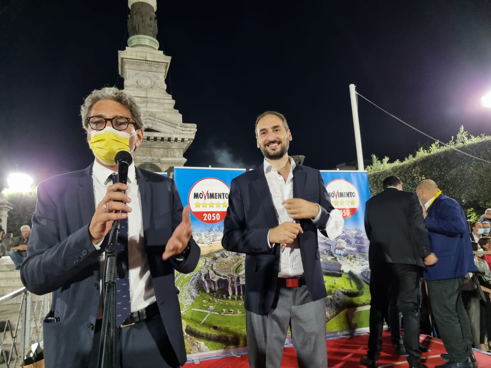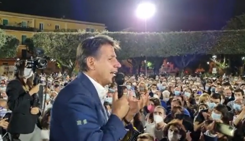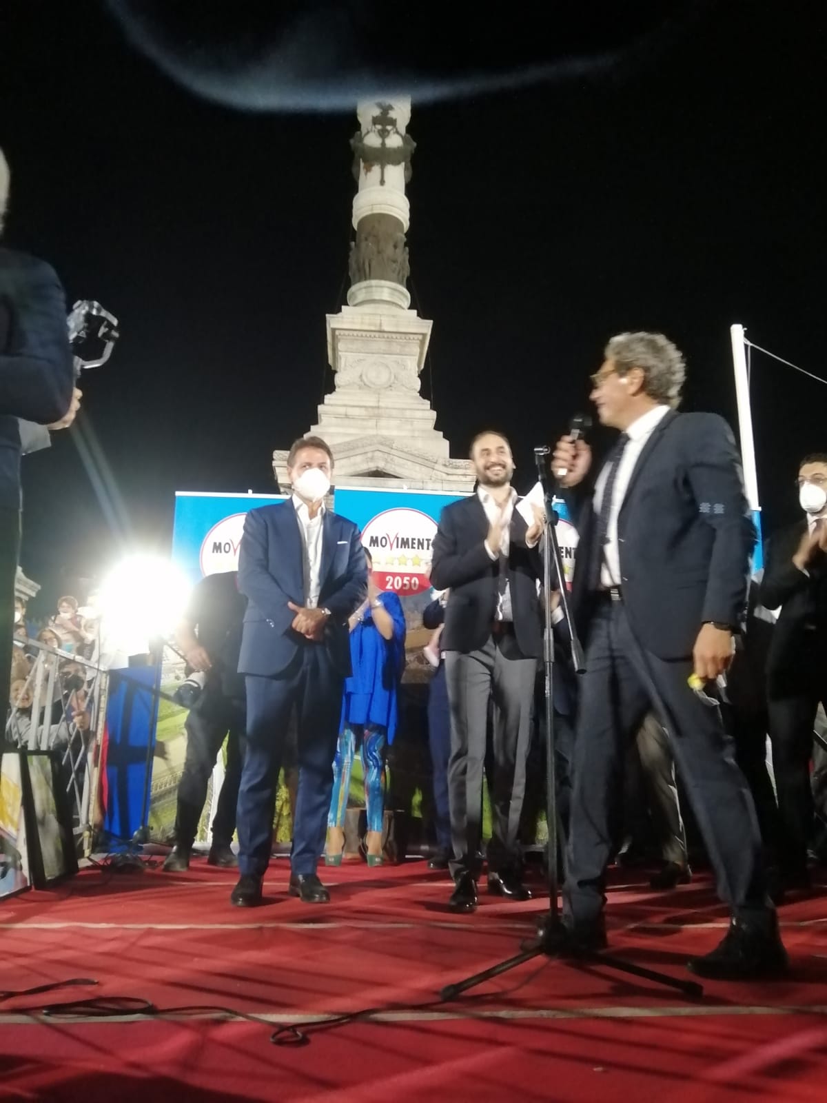 Giuseppe Conte in serata a Santa Maria Capua Vetere per sostenere il candidato sindaco Cinque Stelle Raffaele Aveta. Accanto a Conte tutti i parlamentari casertani del Movimento. “Stiamo riempiendo le piazze, e voi mi state dimostrando grande riconoscenza per quanto fatto – ha proseguito Conte – dimostrando che sappiamo lavorare per voi; lo abbiamo fatto nell’ora più buia della pandemia, muovendoci nello spirito di coesione sociale, e in questo modo abbiamo dimostrato che non ci ferma nessuno, neanche la pandemia. Per poter cambiare l’Italia abbiamo bisogno del vostro sostegno, ma attenzione non vi faremo promesse come gli altri, che annunciano di voler costruire autostrade a otto corsie, né andremo in tv a fare i pagliacci.”