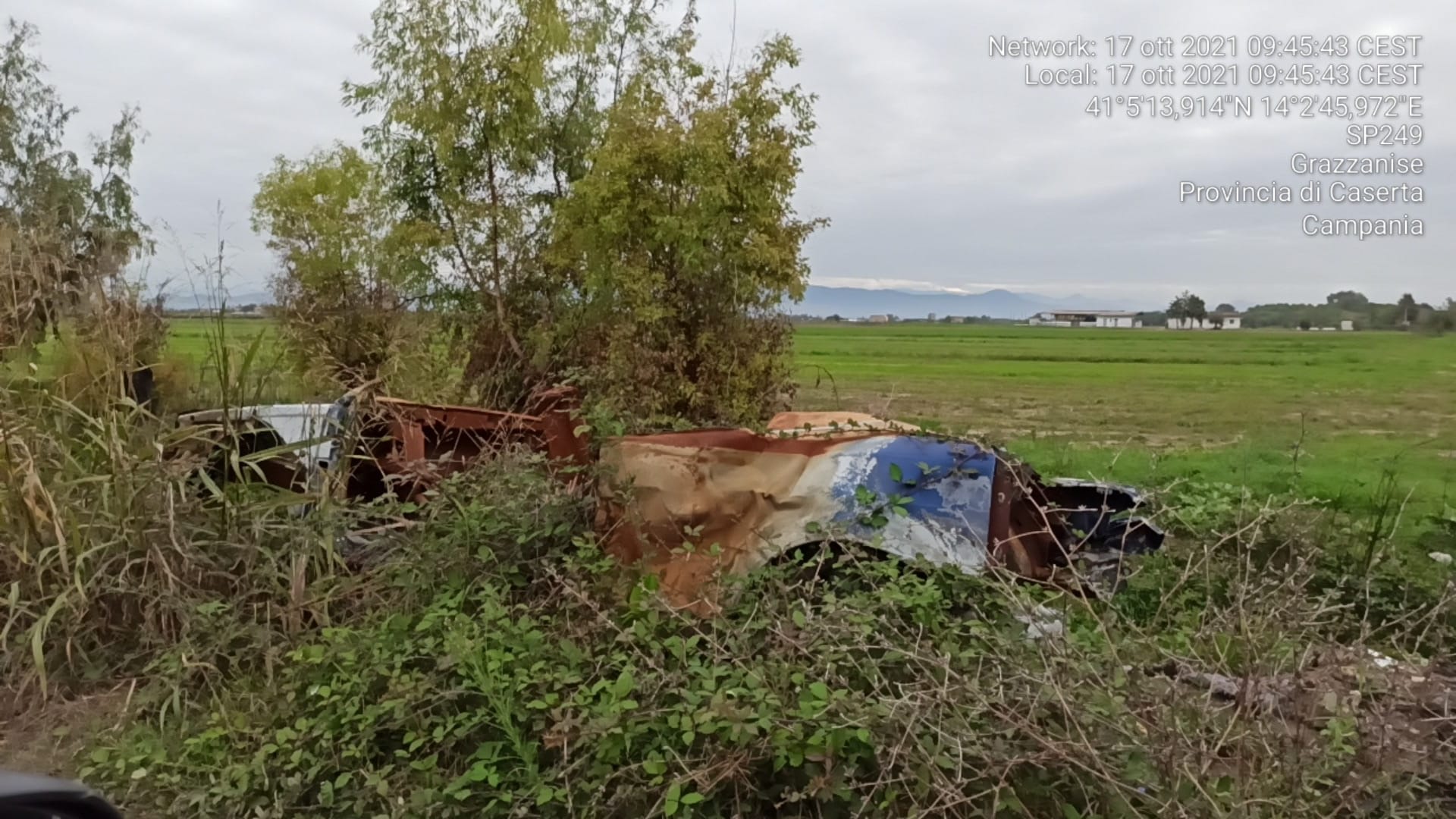 Soprattutto veniva trovata una carcassa di autovettura totalmente data alle fiamme abbandonata su un terreno che costeggia il fiume Volturno un’altra carcassa di autovettura più volte segnalata abbandonata sul ciglio del fossato di via Bonifica e che persiste da circa 3 anni. Rinvenuti anche grossi pneumatici di trattori, numerosi materiali plastici, materiali lignei, indumenti, e residui di pregresse ceneri di combustioni, guaine bituminose, polistirolo. Il ritrovamento è stato segnalato alle autorità.