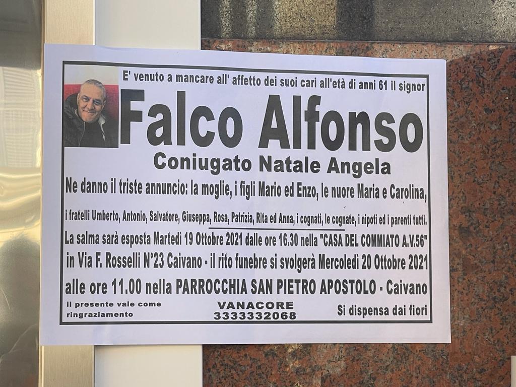I funerali saranno celebrati domani alle 11 nella parrocchia di San Pietro Apostolo a Caivano, la sua città d’origine. In tanti in queste ore passando per lo storico bar chiuso per lutto penseranno ai tanti momenti trascorsi insieme, quando bastava una battuta e un caffè per stemperare gli affanni delle fatiche quotidiane. Buon viaggio, Alfonso.