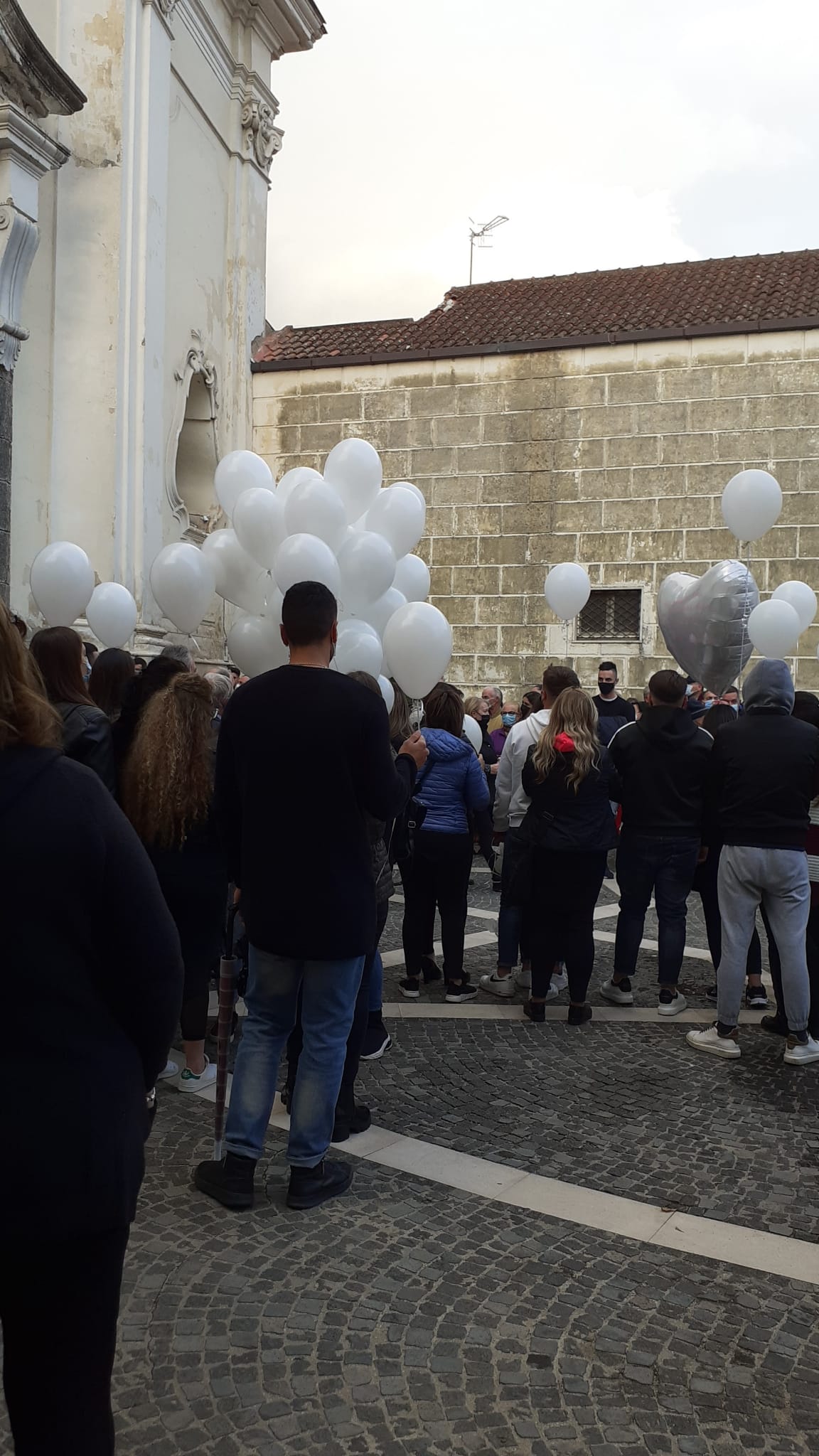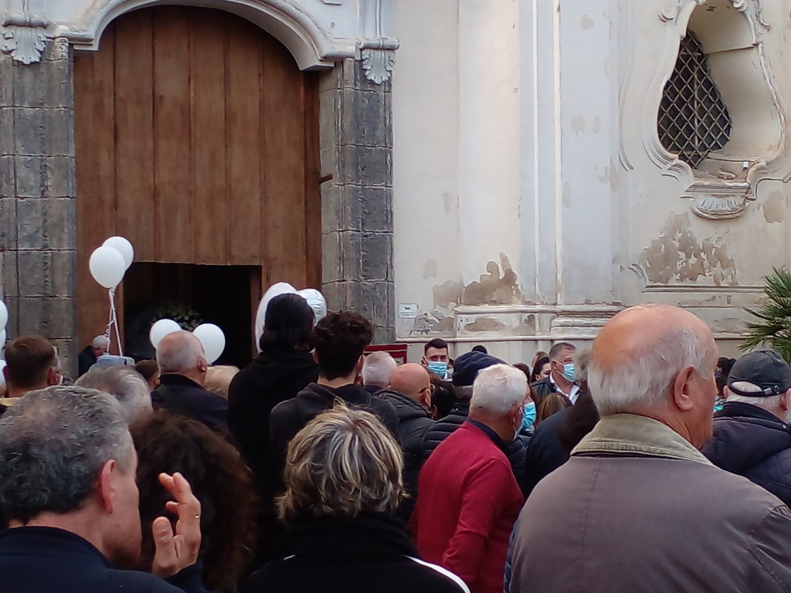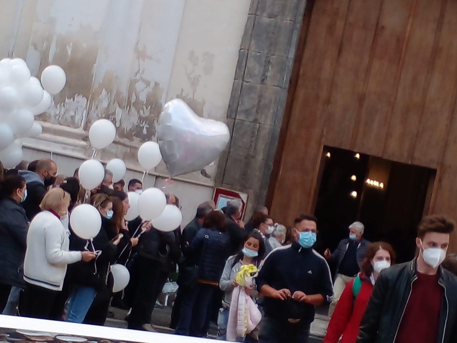 All’uscita palloncini bianchi e cuori e applausi per il suo ultimo viaggio.