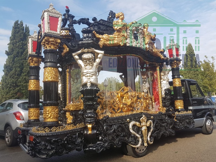 La famiglia per l’ultimo viaggio di Angela ha scelto un pomposo carro funebre con ornamenti dorati, molto simile a quello che venne utilizzato dai Casamonica, il clan sinti della Romanina, nel 2015, per dire addio al padrino Vittorio. In quel caso il carro era trainato da cavalli neri e dal cielo piovevano petali di rose rosse.