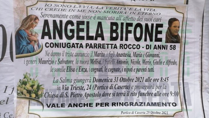 Portico di Caserta. E’ Scomparsa a soli 58 anni Angela Bifone, sorella del boss Antonio Bifone, alias Zuzù, storico esponente della NCO e dell’omonimo clan locale.