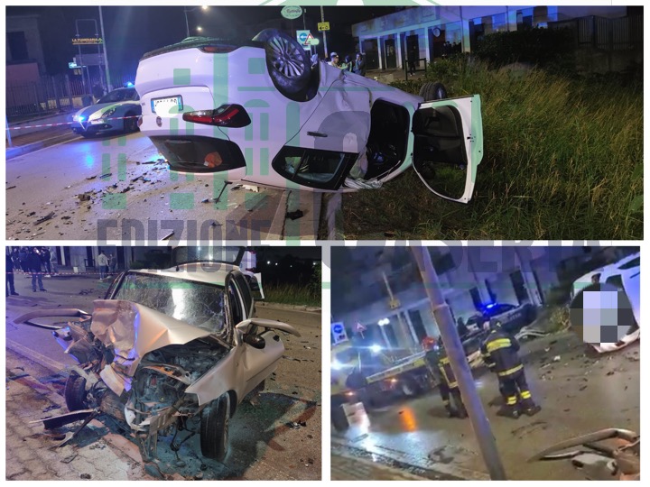 Subito dopo l’impatto le due auto terminavano la loro corsa una sul bordo della carreggiata e l’altra ribaltata in un’area incolta ai bordi della strada, con i conducenti incastrati tra le lamiere delle auto.