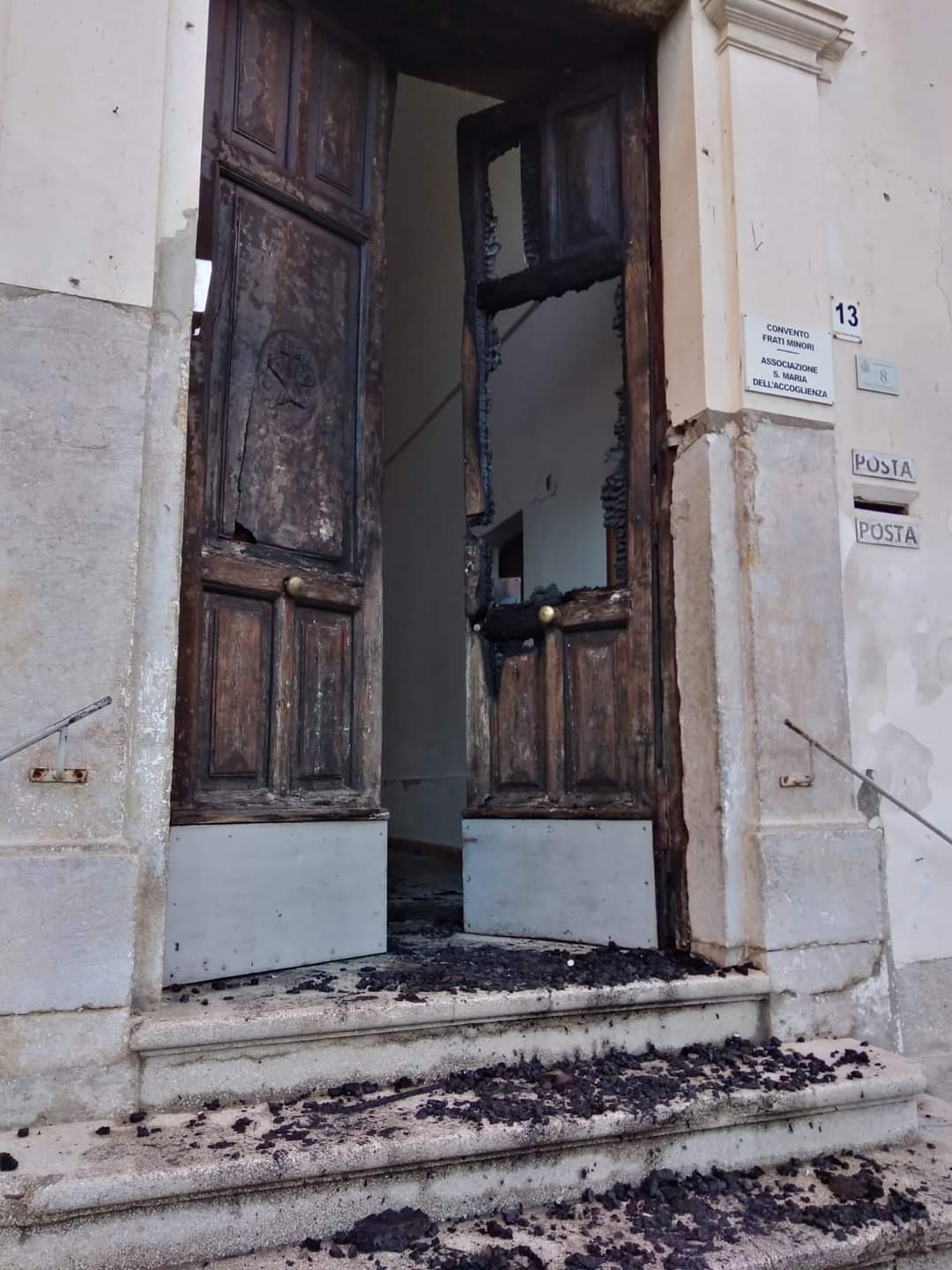 “Questa notte ignoti hanno incendiato la porta d’ingresso del Convento Francescano di Marcianise, lì dove ha sede anche l’Associazione Santa Maria dell’Accoglienza che da sempre è vicina agli ultimi.