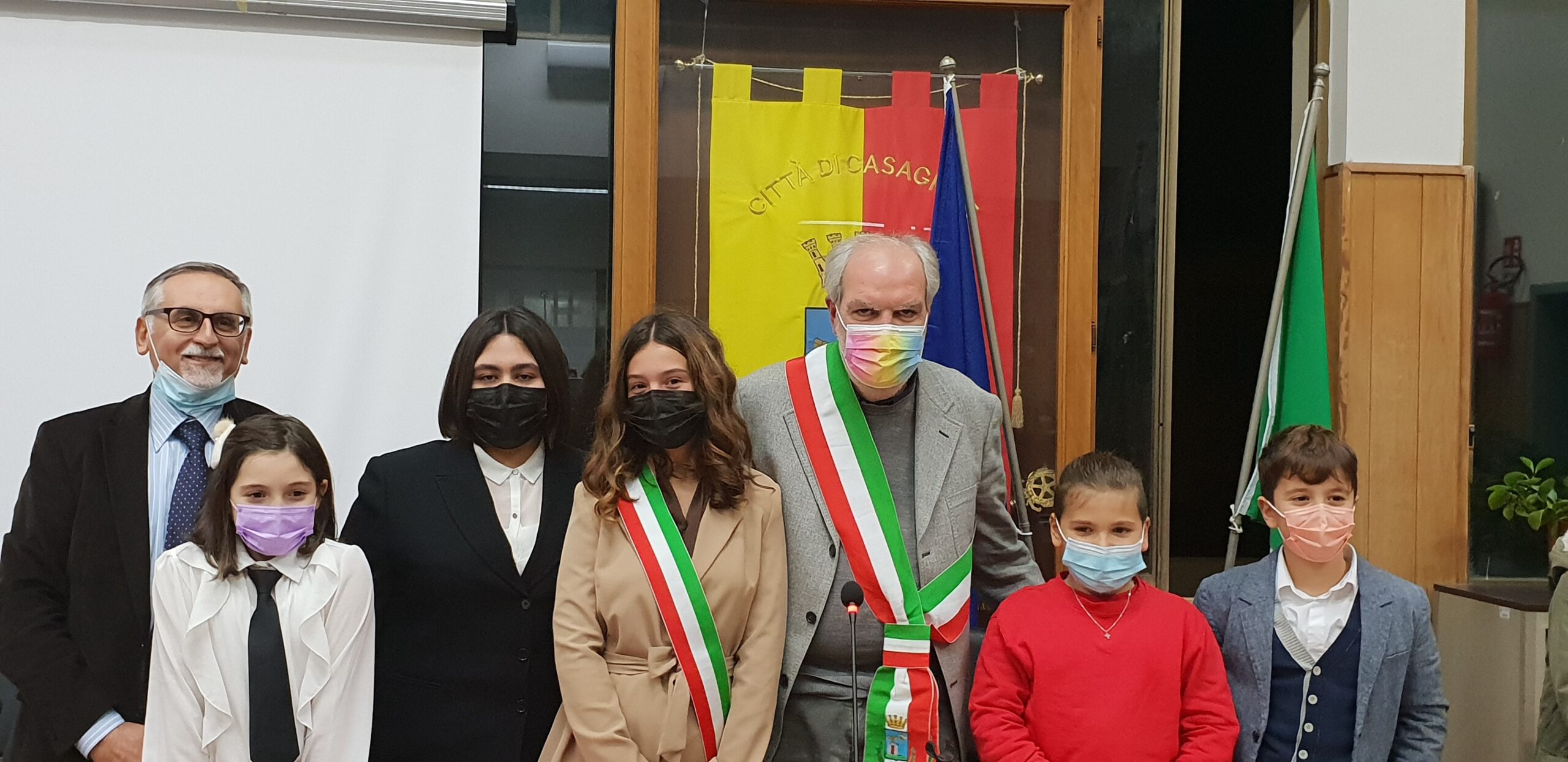 La cerimonia ha assunto toni solenni con il giuramento di Martina Trematerra, la neo sindaca dei ragazzi e delle ragazze, che con fermezza e convinzione ha letto le sue promesse, dimostrando già di essere all’altezza del suo ruolo. Il Sindaco Giuseppe Vozza, visibilmente soddisfatto, ha poi consegnato alla Sindaca junior la medesima fascia tricolore – simbolo della carica – da indossare nelle cerimonie ufficiali e ha specificato che per le sue qualità e doti, Martina Trematerra rappresenterà il Comune di Casagiove alla prossima riunione del Consiglio nazionale dei Ragazzi e delle Ragazze d’Italia, promosso da Democrazia in Erba. Nel corso del civico consesso, dunque, la prima Sindaca junior di Casagiove dell’amministrazione Vozza ha esposto il proprio programma di lavoro e ha designato i quattro Consiglieri Comunali entrati a far parte della Giunta junior, ossia Clara Del Greco, Carelli Natalia, D’Amico Domenico e Pica Michele.