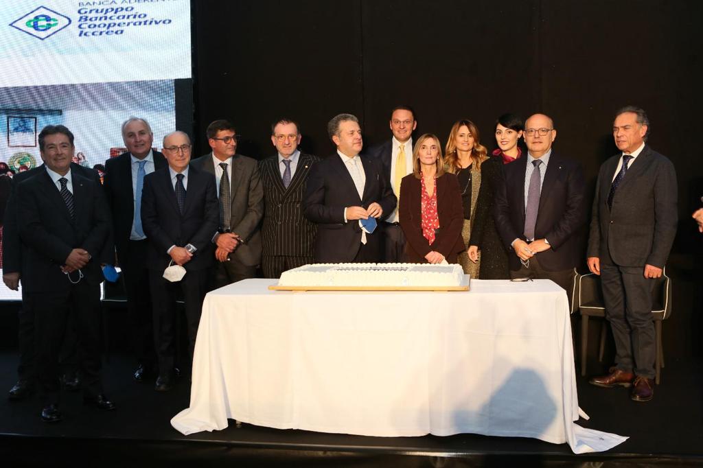 La nascente Mutua San Vincenzo, grazie all’adesione al Consorzio Comisa, rappresentato in platea dal Vice Presidente Stefano Mecocci, che raggruppa le mutue delle altre Bcc sul territorio nazionale potrà a breve erogare tanti servizi ai soci che aderiranno alla lodevole iniziativa. A conferma della forte connotazione valoriale e legame al territorio della Bcc Terra di Lavoro la recente piantumazione di alberi in via Quartier Nuovo a Casagiove ad opera della banca per concretizzare l’impegno e la sensibilità del Credito Cooperativo ai temi ambientali e della transizione ecologica. Anche la scelta di far preparare le torte per festeggiare i 100 anni della banca ai giovani pasticceri degli istituti alberghieri del territorio dimostra l’interesse del Credito Cooperativo al mondo della formazione, della scuola e dei giovani. In altre parole del futuro. Infine il taglio delle torte in contemporanea è avvenuto in collegamento video con il Centro Immigrati Campania Fernandes in Castel Volturno e i suoi ospiti, opera dell’Arcidiocesi di Capua, tra i presidi di accoglienza e solidarietà più grandi d’Italia per il fenomeno dell’immigrazione, e la sede dell’Associazione Aniep in Casagiove con la Presidente Adele Di Gioia, con altri soci, da sempre impegnata nella lotta per i diritti dei disabili e per l’abbattimento di tutte le diseguaglianze.