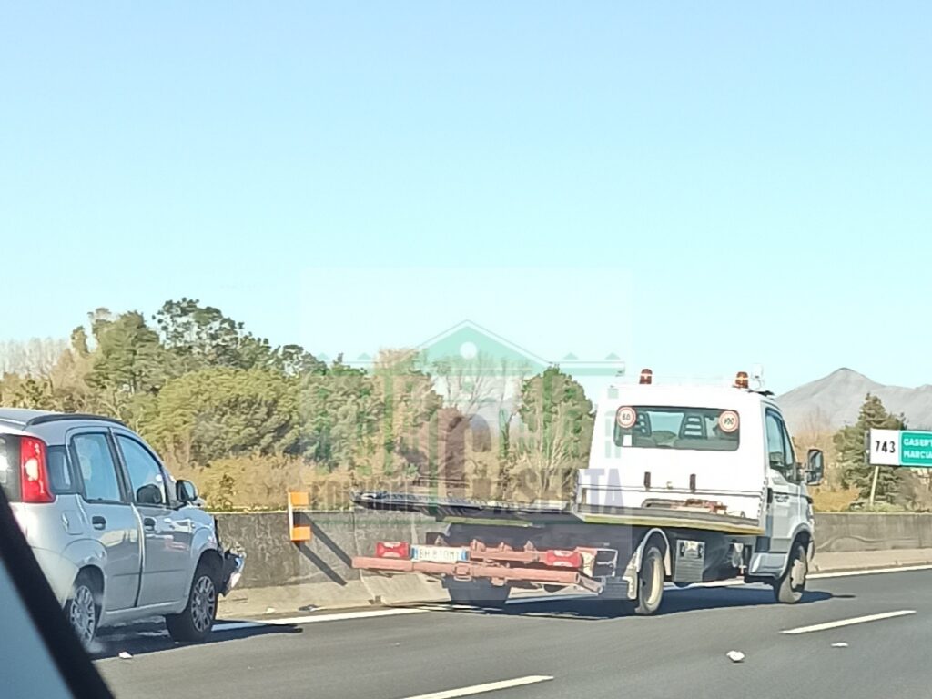 Una Fiat Panda di colore grigio si è andata a schiantare contro il guardrail a seguito di un urto con un altro veicolo. Sul posto ci sono gli agenti della polizia stradale del distaccamento di Napoli Nord.