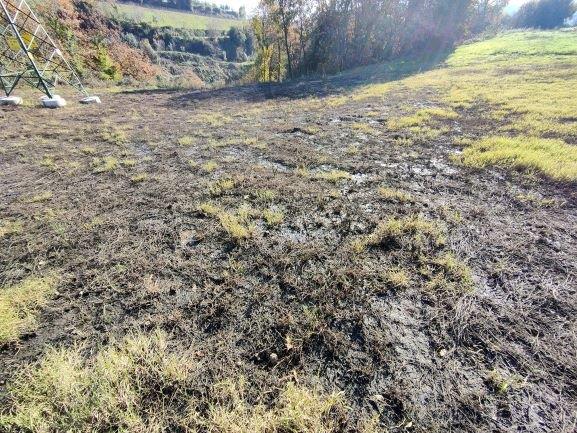 Il terreno circostante alla zona di spandimento dei reflui oleari si è presentato incolto ed acclive e, pertanto, non idoneo per l’operazione di utilizzazione agronomica in atto. Inoltre, in detta zona la vegetazione erbacea si è presentata coperta da una patina di colore nero e bruciata, sintomatica quindi di un’operazione non idonea per fini agricoli.
