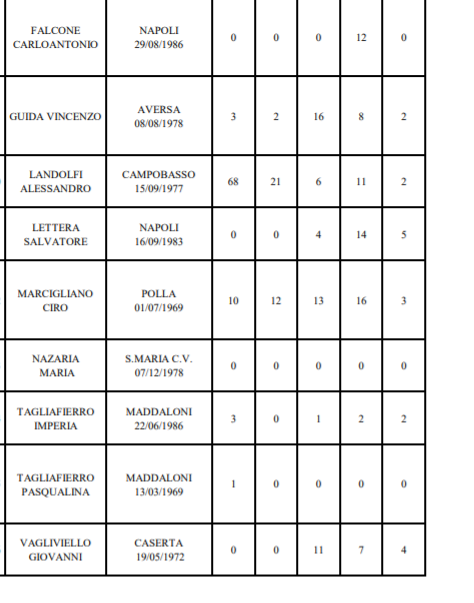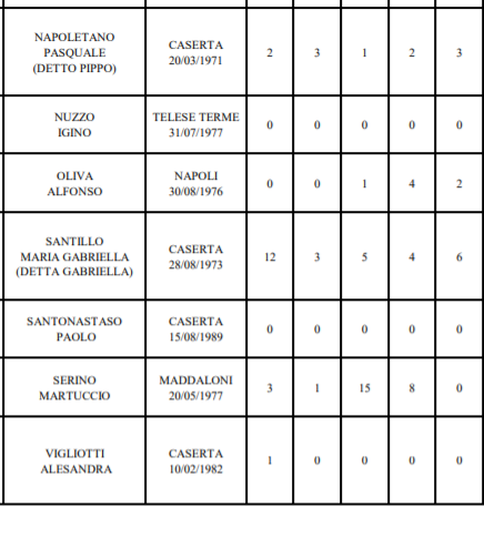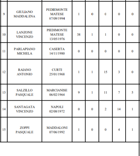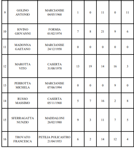 Pasquale Crisci di Santa Maria a Vico, Olga Diana di Aversa, Giovanni Iovino di Cellole, Vito Marotta di San Nicola la Strada, Michele Falco di Parete, Marcello De Rosa di Casapesenna, Massimo Russo di Caserta.
