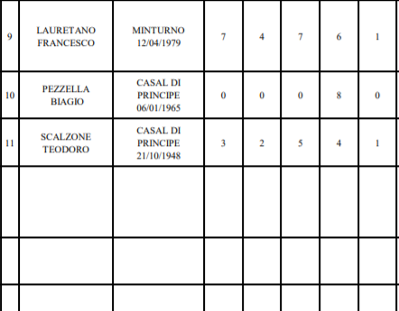 Pasquale Crisci di Santa Maria a Vico, Olga Diana di Aversa, Giovanni Iovino di Cellole, Vito Marotta di San Nicola la Strada, Michele Falco di Parete, Marcello De Rosa di Casapesenna, Massimo Russo di Caserta.