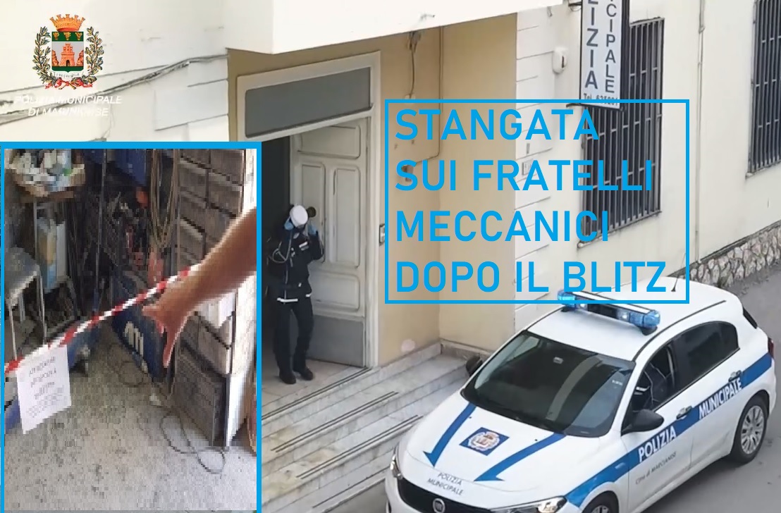 Nel corso dell’attività di indagine degli agenti sono emersi alcuni lavori realizzati in assenza del permesso a costruire in un’area del perimetro del rione San Giuliano adibita ad officina meccanica. Durante i controlli sono stati identificati due fratelli-meccanici che sono stati costretti a rendere conto dei lavori effettuati: le opere realizzate in maniera irregolare sono state prontamente segnalate all’ufficio tecnico per permettere all’Ente di emanare le opportune ordinanze di ripristino dello stato dei luoghi.