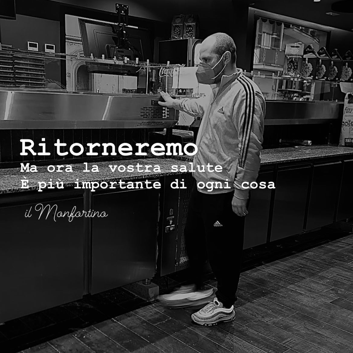 Come vi abbiamo sempre detto veniamo dal nulla e i soldi , anche se sono importanti , non cambieranno il nostro modo di essere . Non è che per guadagnare qualcosa in un momento così, noi vogliamo che i miei ragazzi perdano la serenità o creino problemi di salute alle loro famiglia, e non vogliamo che i nostri rider invece di portare pizze a casa della gente portino il Virus , per tutto questo , per la nostra sicurezza e per la vostra sicurezza Il Monfortino si ferma . Sarà una pausa breve , ci servirà a ricaricarci e a tornare più forti di prima , tutti insieme fuori da questo tunnel.