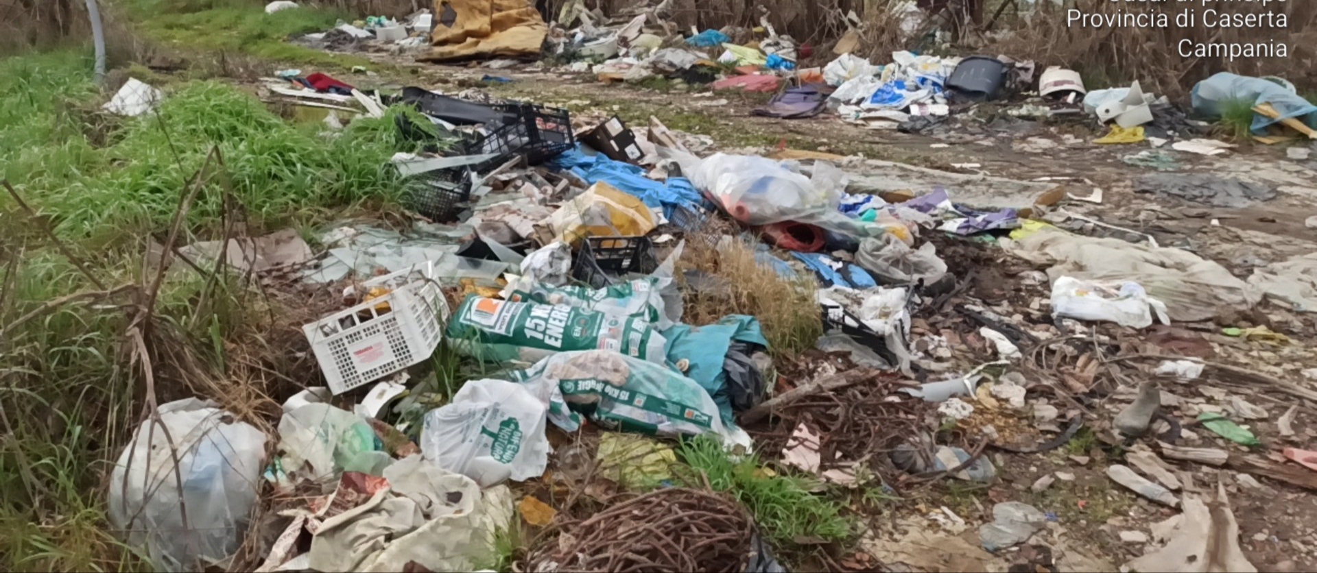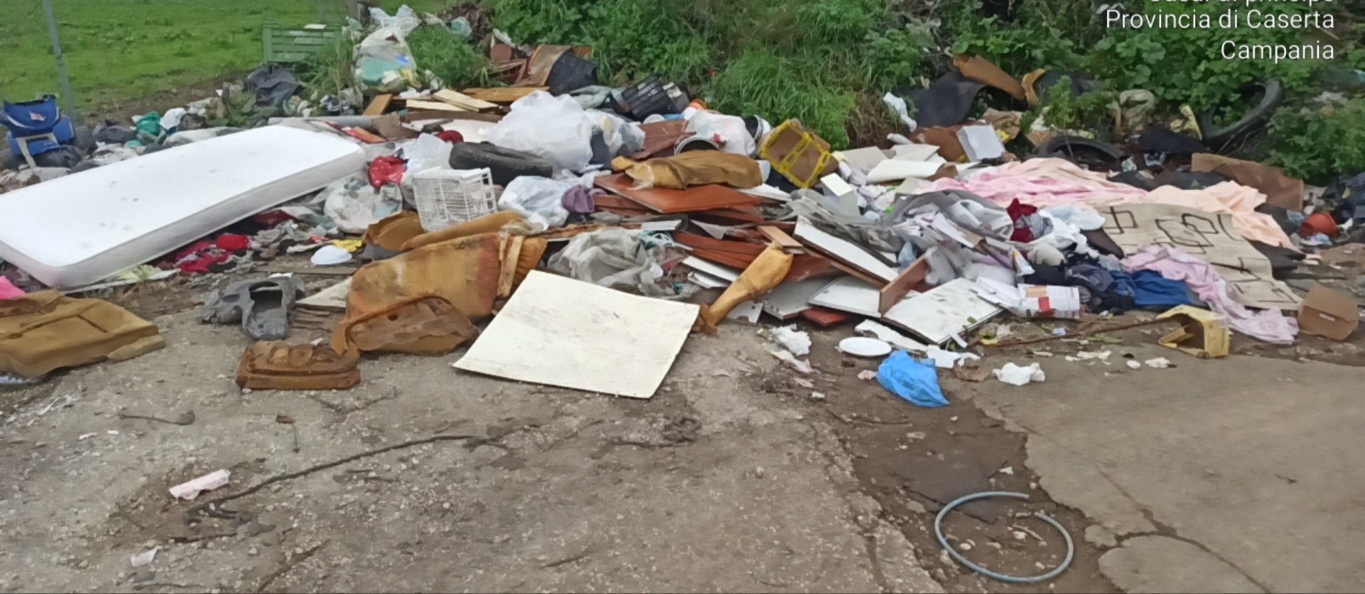 Peraltro in un’altra stradina adibita a consumazione prolungata di abbandono di materiali di vario genere si riscontrava la presenza di: un cumulo di lastre ondulate in verosimile amianto meglio conosciute con il marchio eternit, guaine bituminose, numerosissimi materiali plastici parzialmente combusti, numerosi materassi, scarti di lavori edili, taniche di prodotti corrosivi, RAEE, mobilio, pneumatici, numerose carcasse di frigoriferi smembrati e privati di motore, e altri materiali non ben caratterizzati a vista.