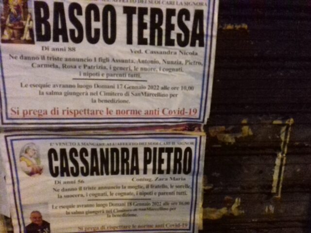 In quelle stesse ore il figlio Pietro Cassandra stava combattendo la battaglia più dura contro il nemico visibile che sta martoriando le nostre vite da due anni. Il 56enne era ricoverato a Maddaloni per un problema di salute, a seguito del quale era risultato anche positivo al Covid. Una sola notte ha separato la madre dal figlio; ora sarà l’eternità a legarli per sempre in un ideale abbraccio che a San Marcellino ha il sapore acre delle lacrime e del dolore.