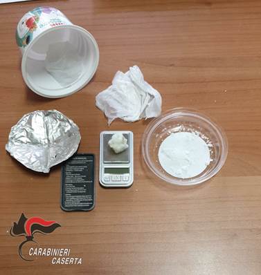 I militari dell’Arma, intervenuti per un controllo presso la sua abitazione, a seguito della perquisizione domiciliare hanno rinvenuto un involucro contenente complessivamente gr. 7 di crack, un bilancino di precisione e materiale per il confezionamento delle dosi di stupefacente.