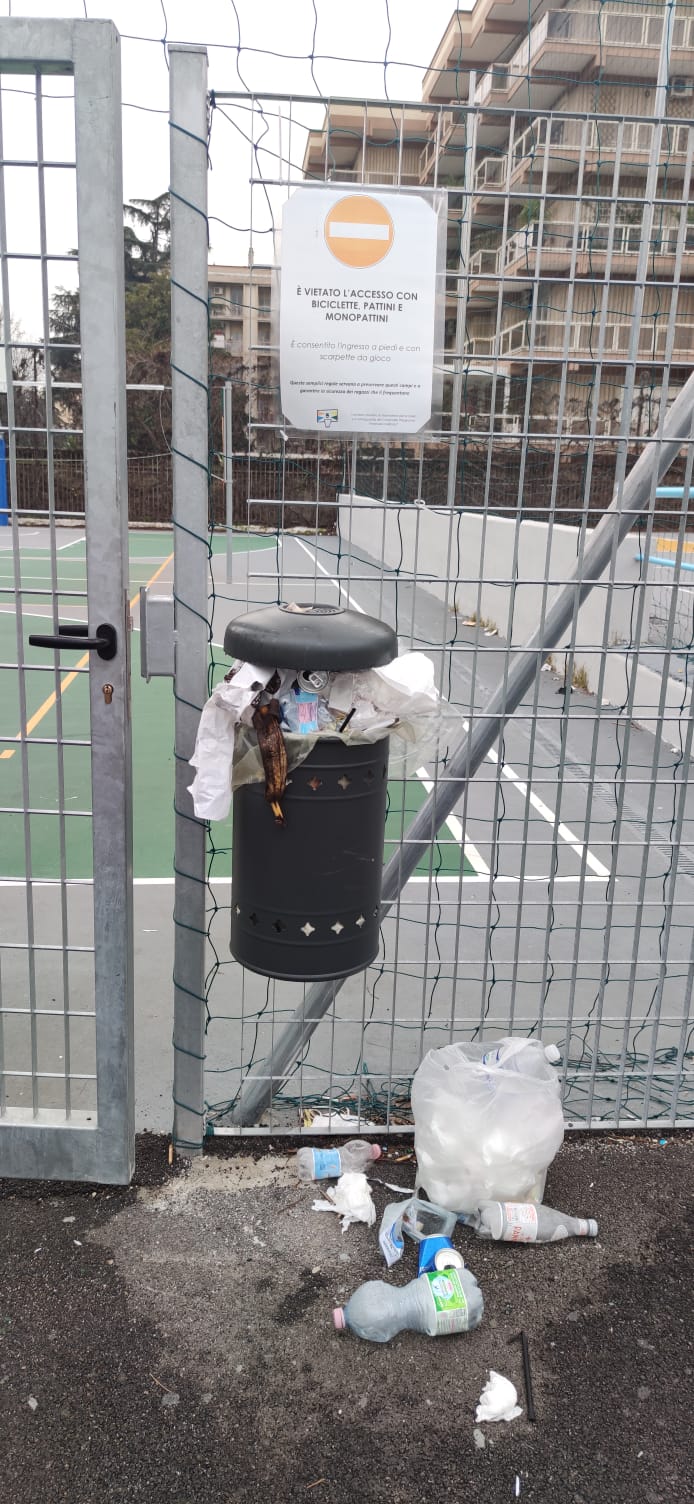 “Questa la condizione in cui versano i campi Nike il lunedì mattina. La colpa ovviamente non è solo dell’utenza, ma di chi gestisce la raccolta dei rifiuti in città.
