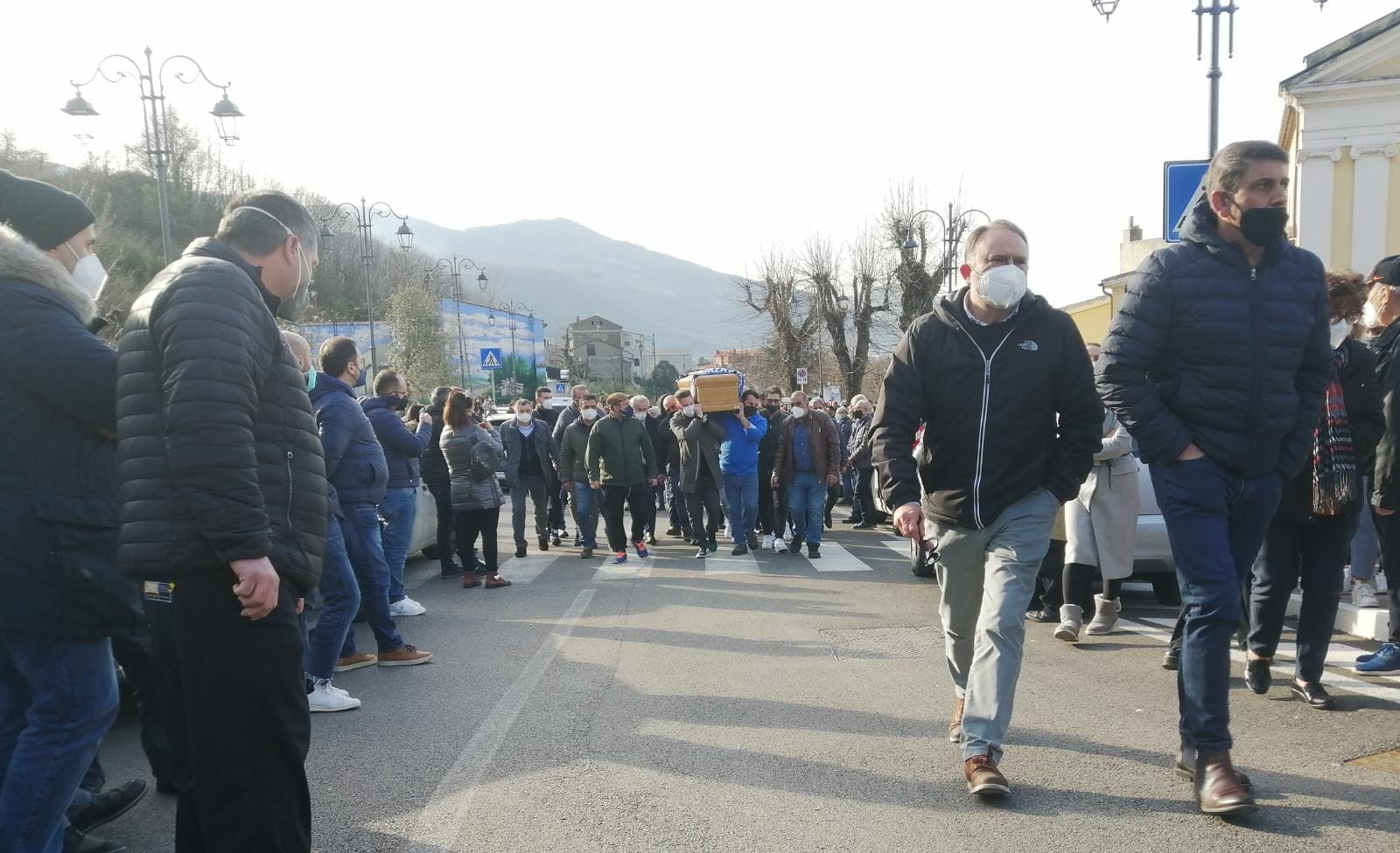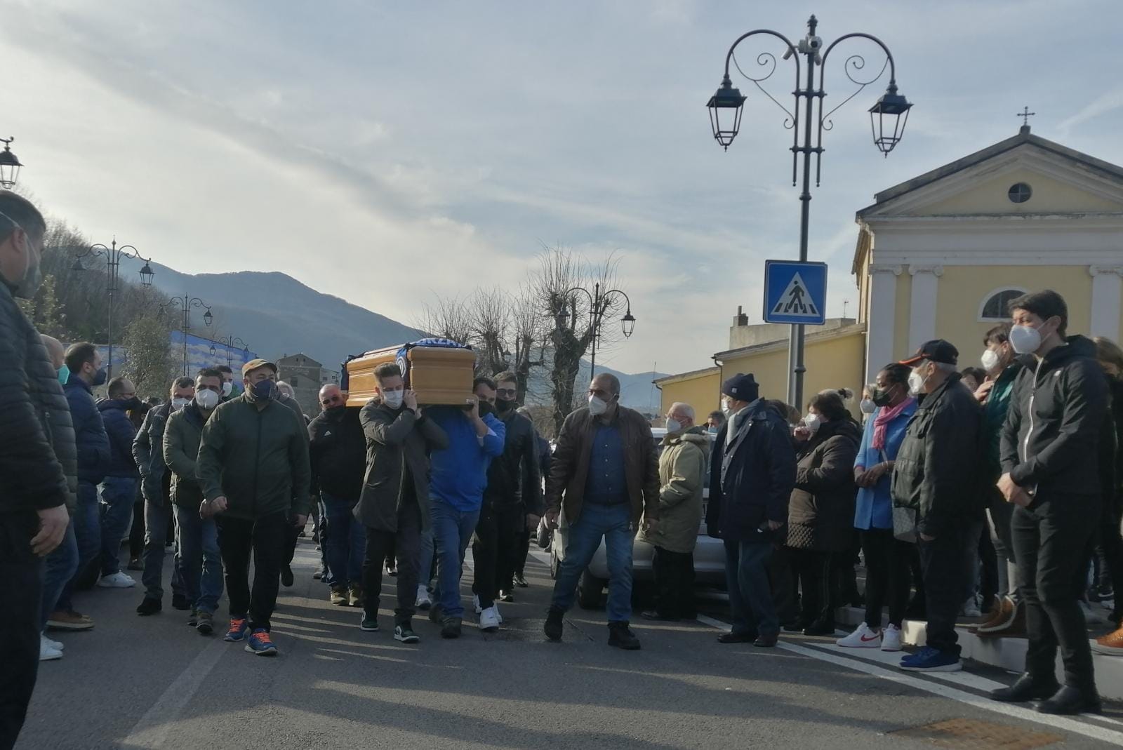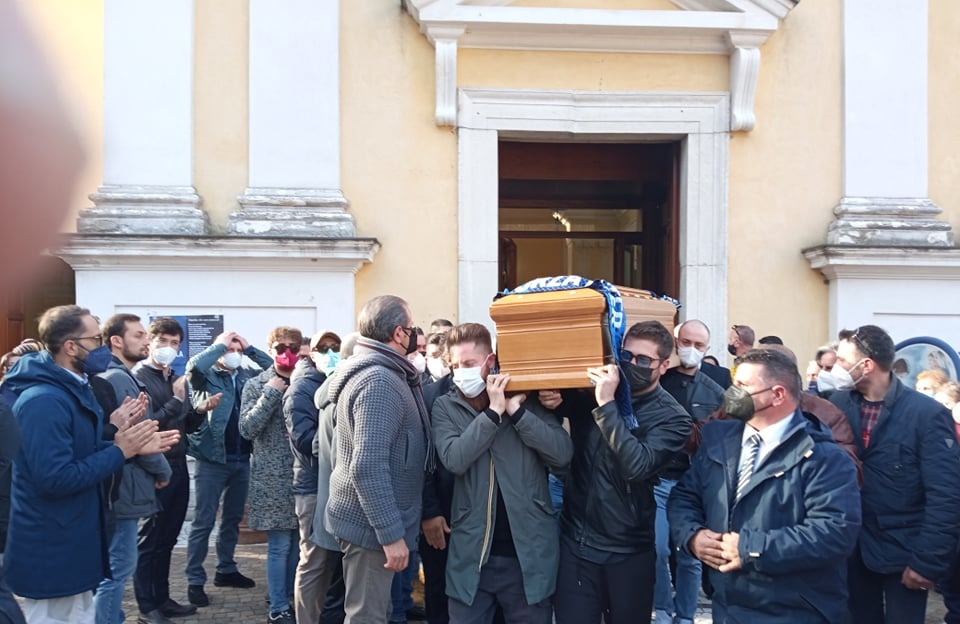 Cervinara. Tutta la comunità di Cervinara è in questo momento in strada per stringersi alla famiglia di Nicola Zeppetelli, ucciso sabato scorso davanti ad un circoletto. Sono in corso i funerali nella chiesa di San Nicola tra lacrime, striscioni e il corteo. Zeppetelli è portato in spalla dagli amici che lo scortano nell’ultimo viaggio.