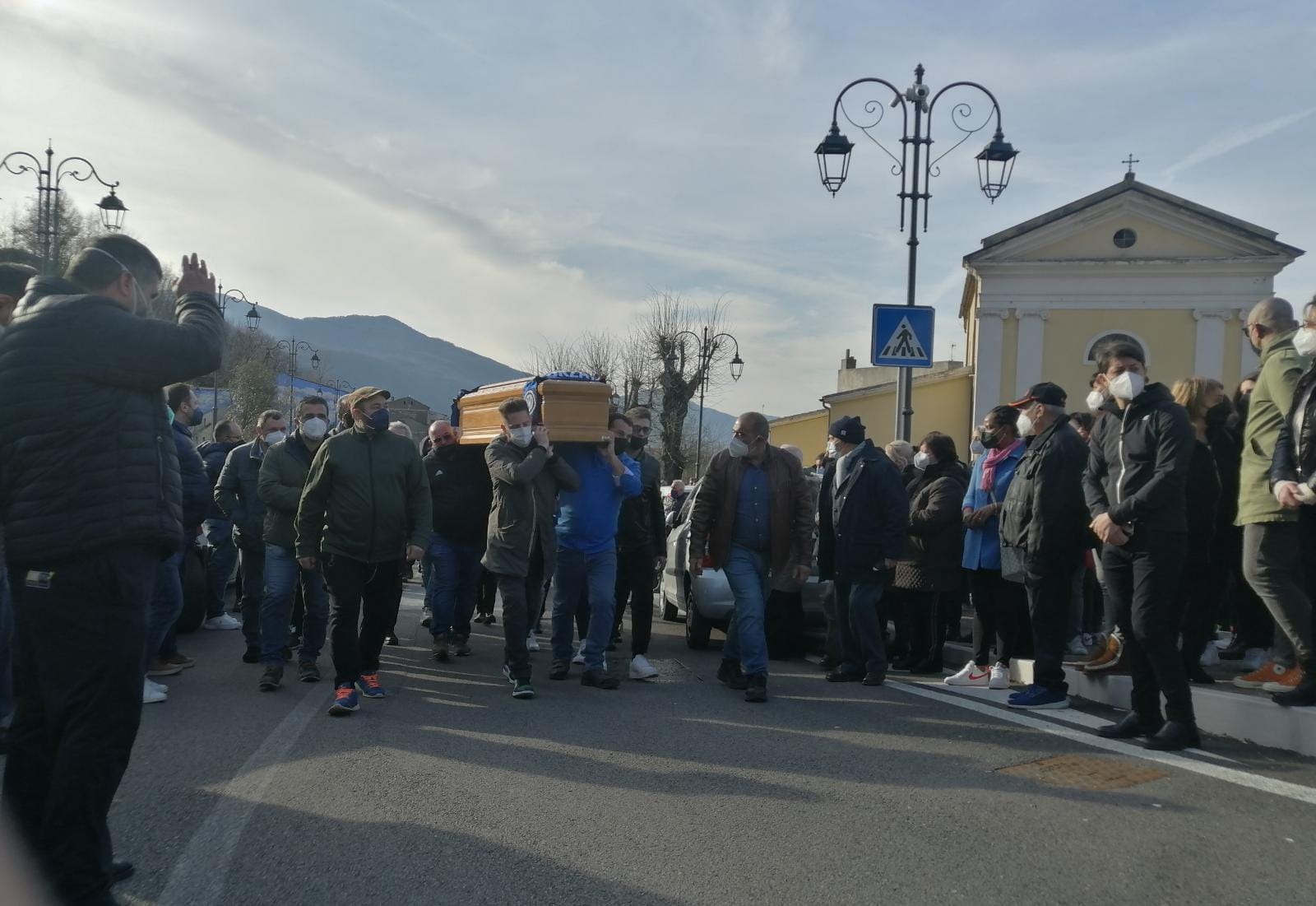 Cervinara. Tutta la comunità di Cervinara è in questo momento in strada per stringersi alla famiglia di Nicola Zeppetelli, ucciso sabato scorso davanti ad un circoletto. Sono in corso i funerali nella chiesa di San Nicola tra lacrime, striscioni e il corteo. Zeppetelli è portato in spalla dagli amici che lo scortano nell’ultimo viaggio.