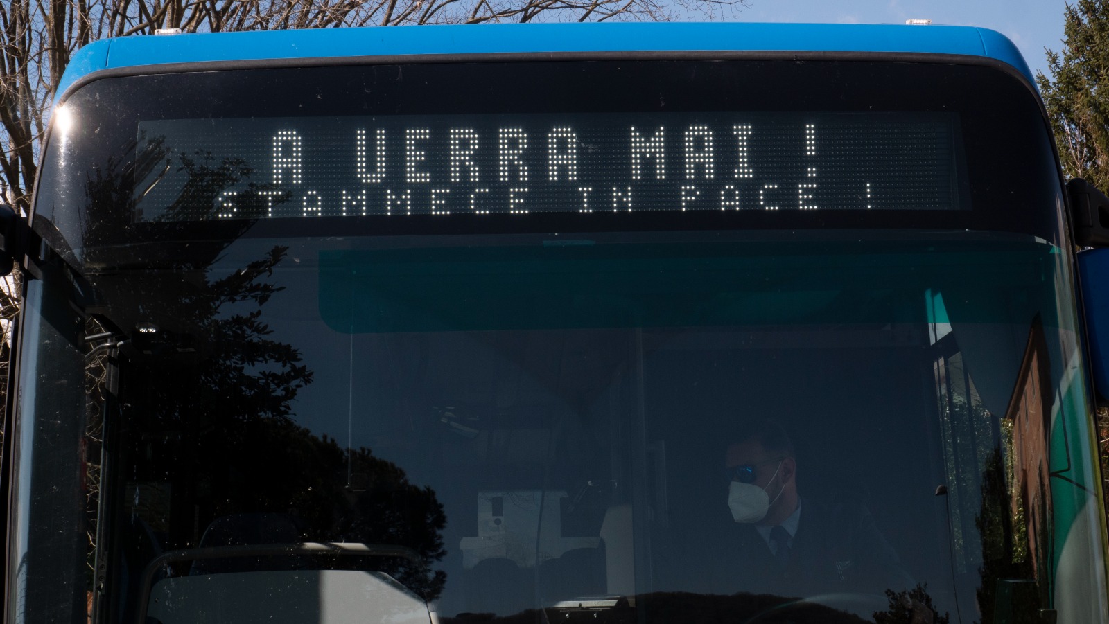 Per tre giorni, da oggi a domenica, i bus della flotta dell’azienda regionale di trasporto su gomma viaggeranno proiettando sui display messaggi di pace.