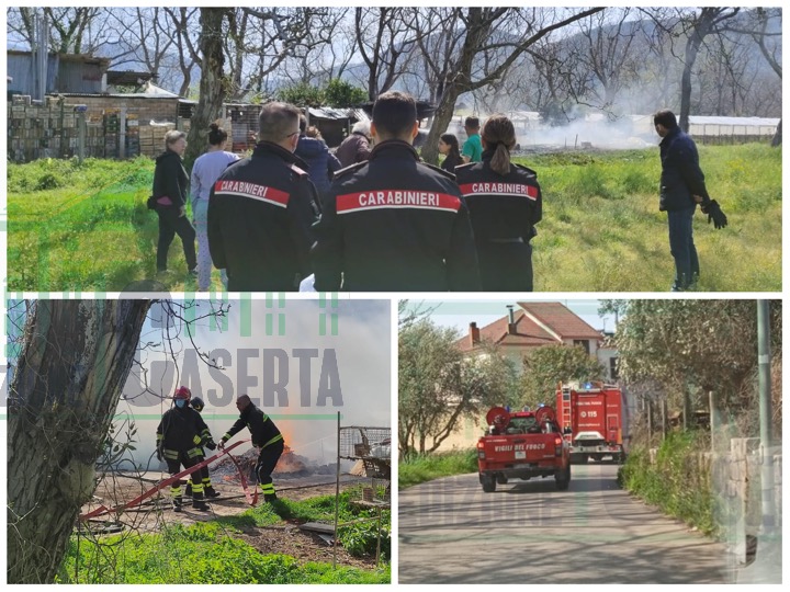 Problemi anche agli animali, Sgambato è stato aiutato dai carabinieri per trarli in salvo. Tutto è nato dal fatto che stava accendendo dei cartoni, poi a causa del vento ha perso il controllo.