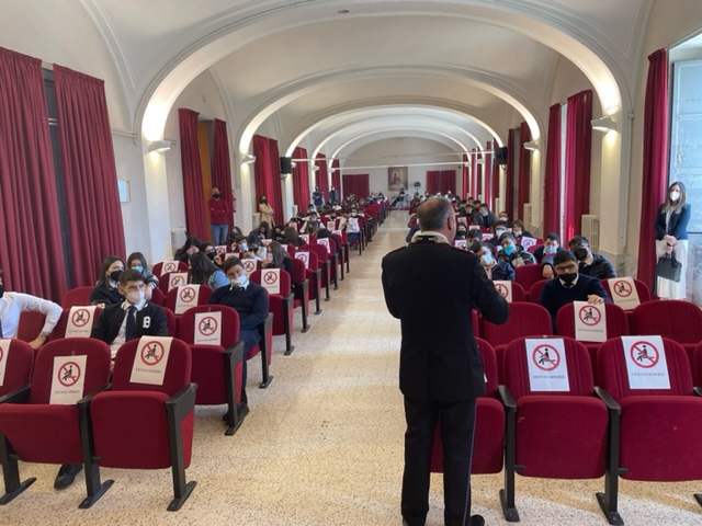 MADDALONI. Stamane, gli studenti delle Scuole Superiori della Fondazione Villaggio dei Ragazzi “don Salvatore d’Angelo” hanno trascorso una giornata all’insegna della cultura della legalità. Supportati dai propri docenti, gli allievi hanno infatti incontrato, nella sala Chollet dell’Ente calatino, il Capitano Massimo Esposito, Comandante della Compagnia dell’Arma dei Carabinieri di Maddaloni.