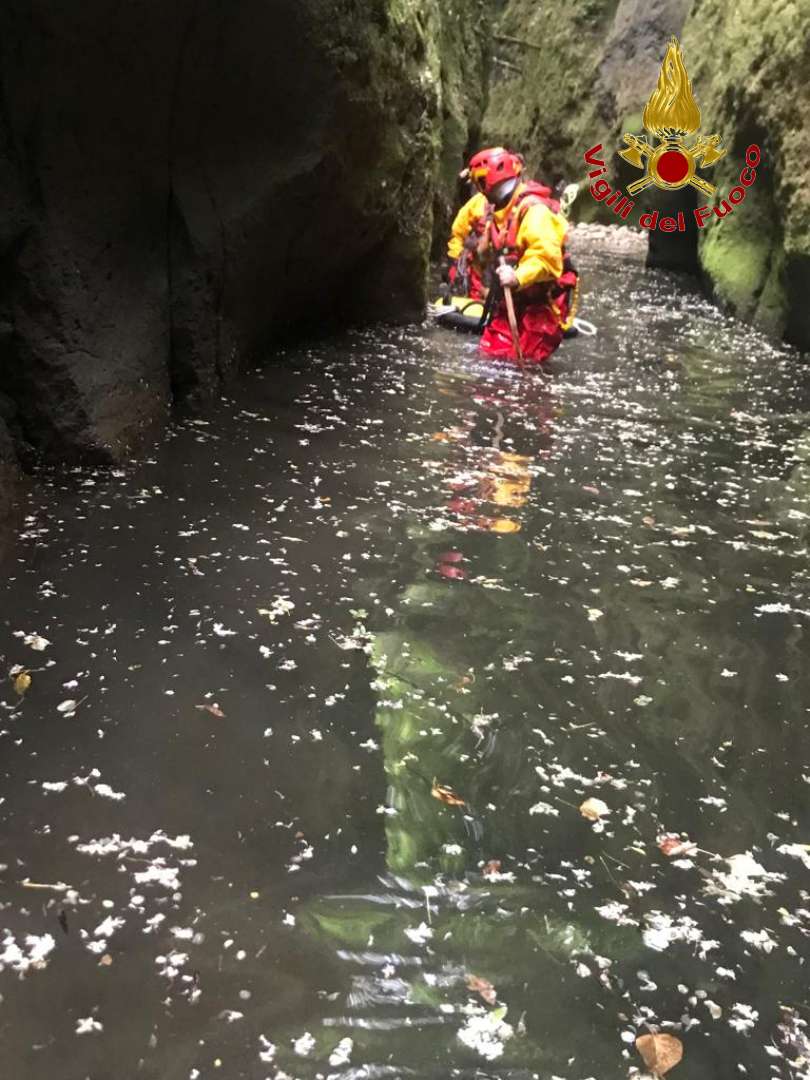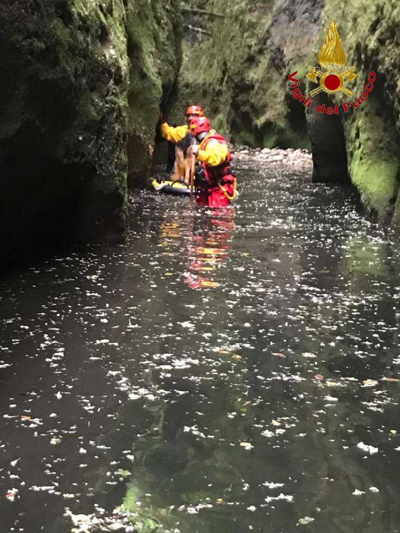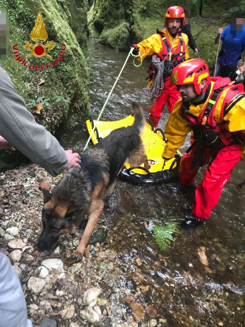 Cane cade nel dirupo, vigili del fuoco si gettano in acqua per salvarlo. FOTO