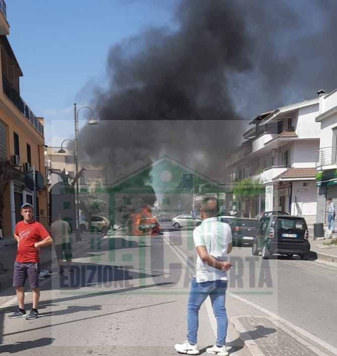 CASAL DI PRINCIPE. Momenti di paura poco fa in via Vaticale a Casal di Principe. Una vettura ha infatti preso fuoco lungo l’arteria che conduce alla caserma dei carabinieri.