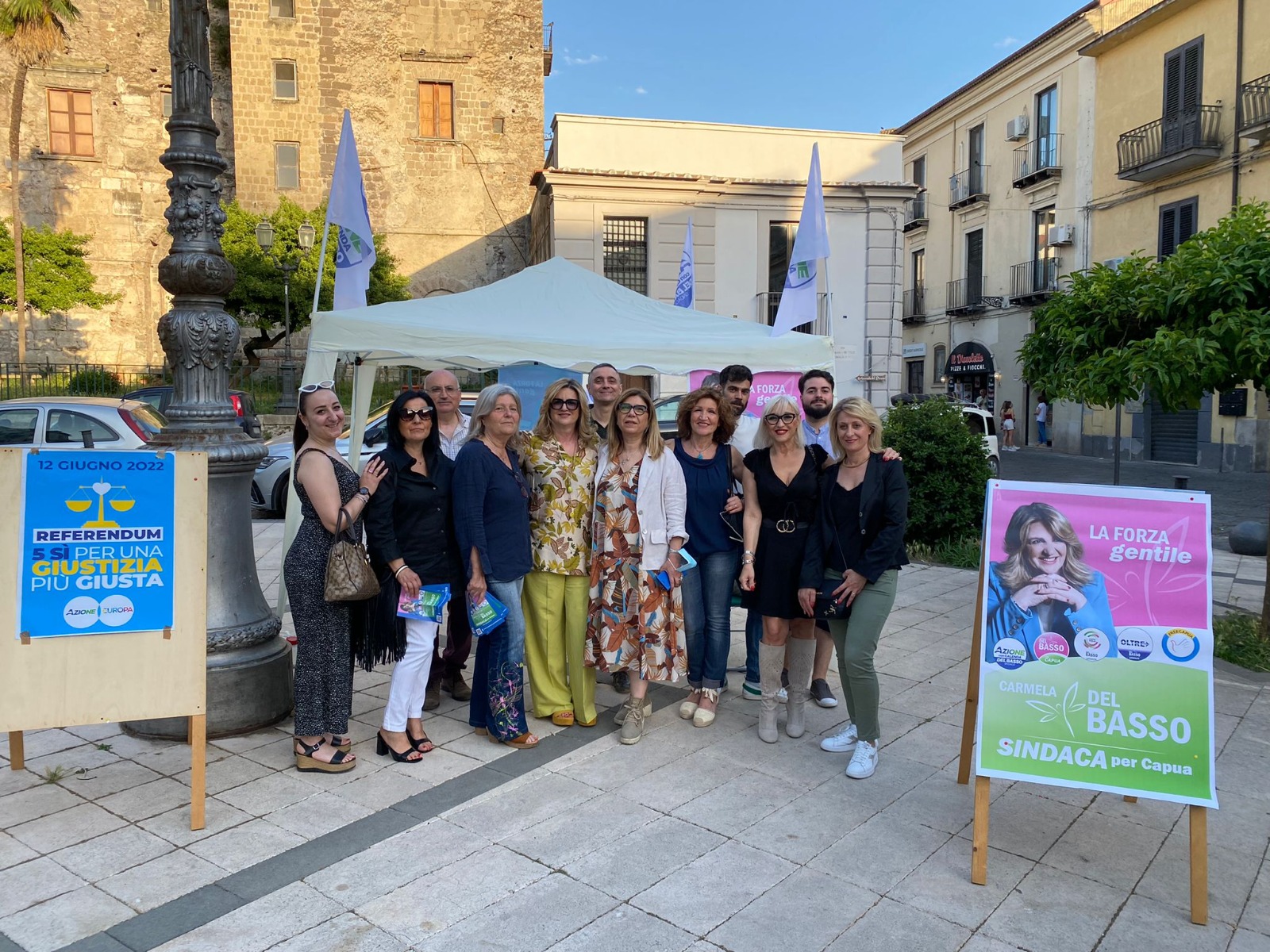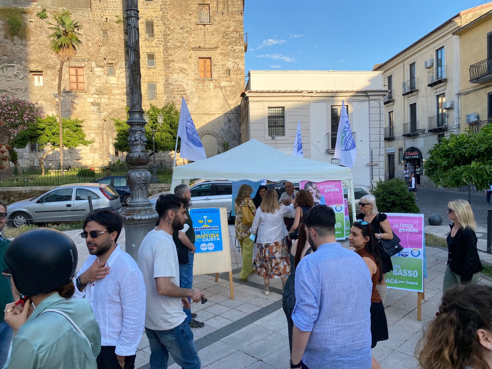 In piazza anche la candidata a sindaco Carmela del Basso che, per le elezioni comunali, è sostenuta anche dalla lista di Azione. “Sono accanto ad Azione che, come sempre, è in grado di offrire spunti di riflessione importanti al dibattito politico nazionale e cittadino. Nessuno, a Capua, – ricorda del Basso – si è preoccupato di informare gli elettori che insieme alle comunali si terrà un importante referendum sulla giustizia ed è doppiamente importante e significativa la nostra presenza in piazza”.