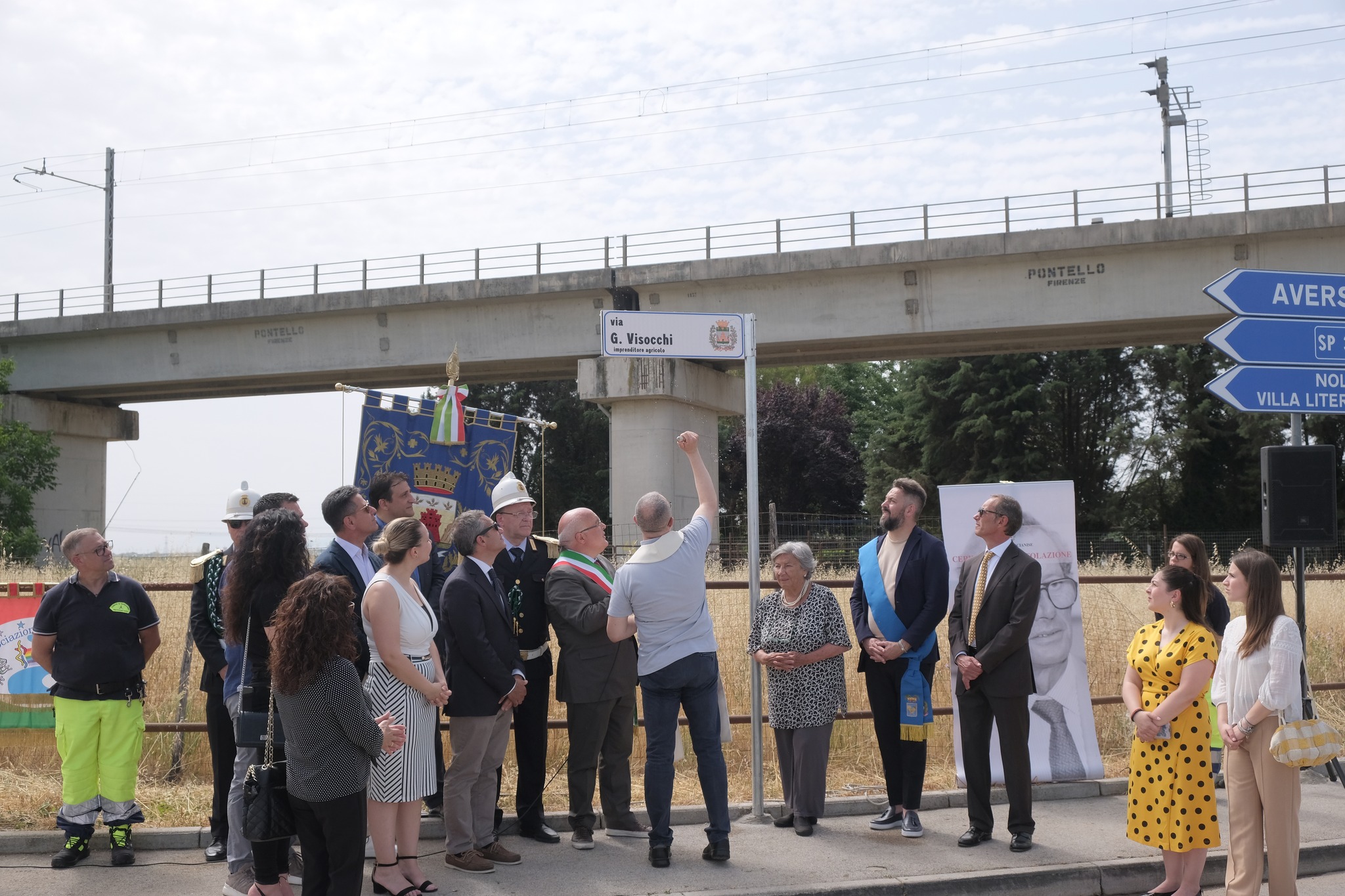 La cerimonia si è aperta con il saluto istituzionale del Sindaco Antonello Velardi e dell’Assessore all’Agricoltura Giuseppe Golino; è proseguita con la lettura di un contributo sulla figura di Giorgio Visocchi del professore Salvatore Delli Paoli, storico e ricercatore, presentato dall’Assessore alla Cultura Antonella Pasubio. Il Saluto della Provincia di Caserta è stato portato dal vice presidente Pasquale Crisci. Successivamente è intervenuta la vedova del compianto Giorgio Visocchi, la signora Annamaria, che ha espresso il vivo compiacimento a nome della famiglia per l’iniziativa assunta dall’Amministrazione comunale. Al termine è stata scoperta la targa che indica il nome della strada: don Luca Baselice, neo parroco di Nostra Signora di Fatima, ha benedetto tutti i presenti. La manifestazione si è chiusa con l’Inno Nazionale di Mameli.