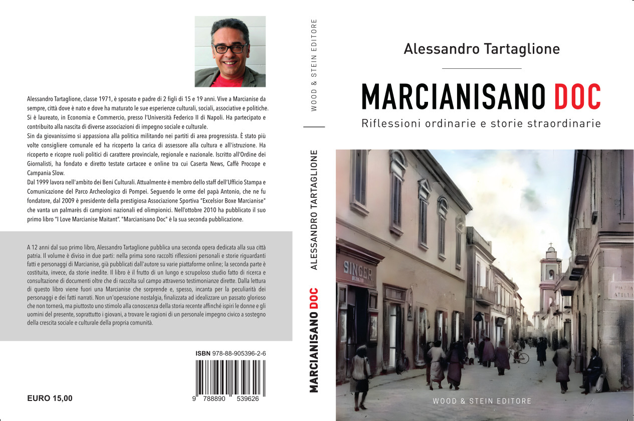 A 12 anni dal suo primo libro, Alessandro Tartaglione pubblica una seconda opera dedicata alla sua città patria. Il volume è diviso in due parti: nella prima sono raccolte riflessioni personali e storie riguardanti fatti e personaggi di Marcianise, già pubblicati dall’autore su varie piattaforme online; la seconda parte è costituita, invece, da storie inedite. Il libro è il frutto di un lungo e scrupoloso studio fatto di ricerca e consultazione di documenti oltre che di raccolta sul campo attraverso testimonianze dirette. Dalla lettura di questo libro viene fuori una Marcianise che sorprende e, spesso, incanta per la peculiarità dei personaggi e dei fatti narrati. Non un’operazione nostalgia, finalizzata ad idealizzare un passato glorioso che non tornerà, ma piuttosto uno stimolo alla conoscenza della storia recente affinché ispiri le donne e gli uomini del presente, soprattutto i giovani, a trovare le ragioni di un personale impegno civico a sostegno della crescita sociale e culturale della propria comunità.