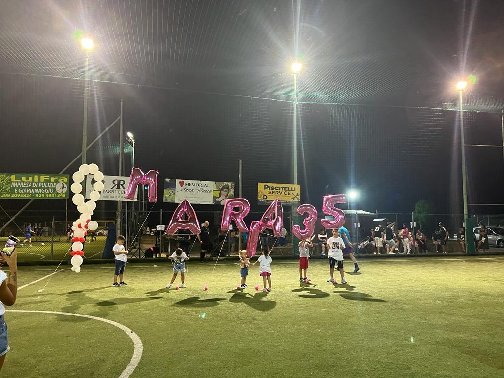 Presenti i familiari di Maria che hanno presenziato alla premiazione delle tre squadre che hanno composto il podio, a trionfare una squadra calatina denominata Supermercati D’Angelo. Sul campo come si evince dal video anche il figlioletto che ha partecipato al momento di raccoglimento e al lancio dei palloncini che raffiguravano le lettere del nome della madre, lui aveva la M.