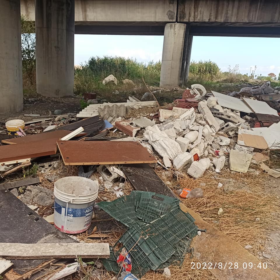 I volontari hanno riscontrato la presenza di numerosissime lastre ondulate in matrice cementizia meglio conosciute con il marchio eternit contenente verosimile amianto rotte in diversi punti e maggiormente pericolose poiche rilasciano fibre aerodisperse a causa delle vibrazioni del transito continuo di automezzi; grossi pneumatici; sfabbricidi; materiali plastici; scarti di lavorazioni tessili; mobilio; RAEE.