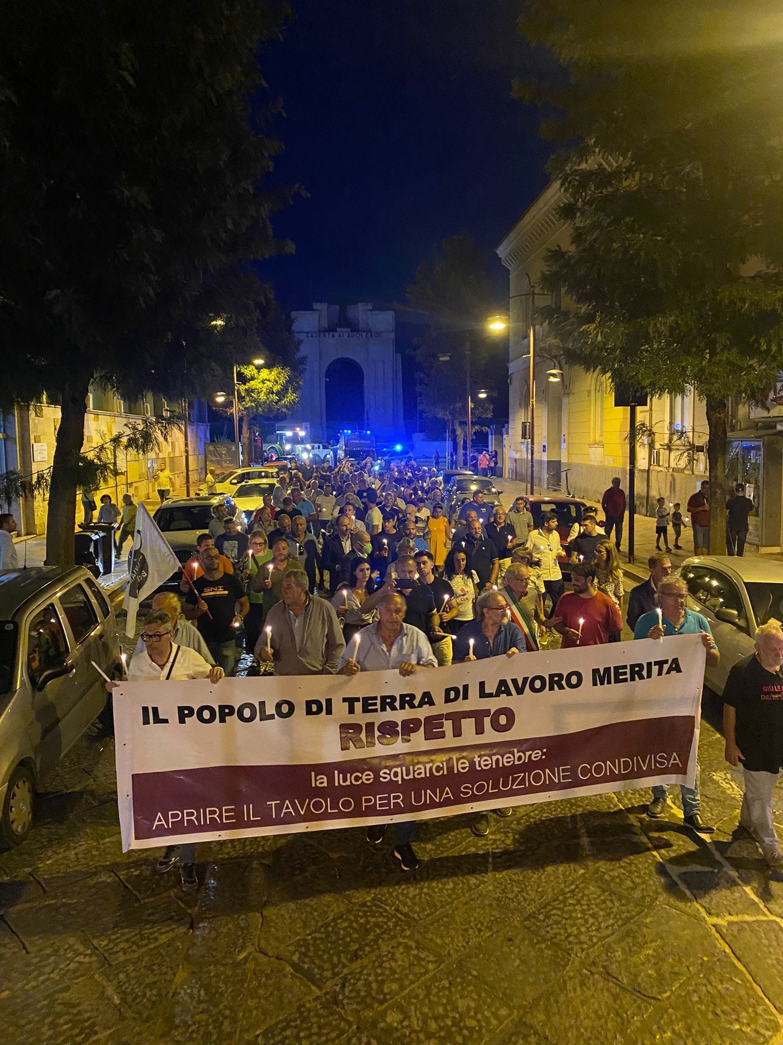 CASERTA. “Il popolo di Terra di Lavoro merita rispetto”: sono le parole dello striscione che ha aperto ieri sera a Caserta la fiaccolata degli allevatori bufalini, giunti nel capoluogo della Reggia con decine di trattori, parcheggiate tra piazza Vanvitelli, sede della prefettura, e davanti al Monumento ai Caduti, vicino alla Asl.