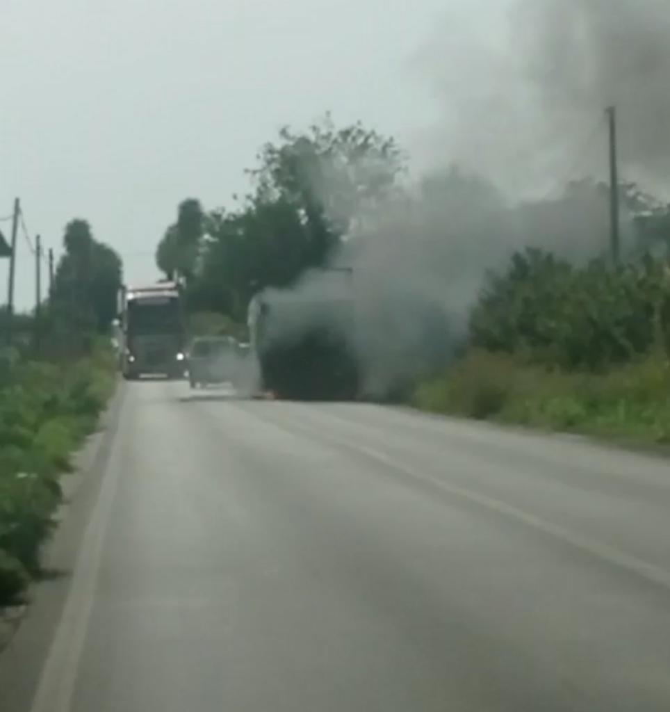 Francolise. Paura sulla provinciale per Sparanise, direzione Sant’Andrea del Pizzone, in tenimento di Francolise. Un camion è andato in fiamme mentre era in marcia. Per fortuna l’autista è riuscito a mettersi in salvo.