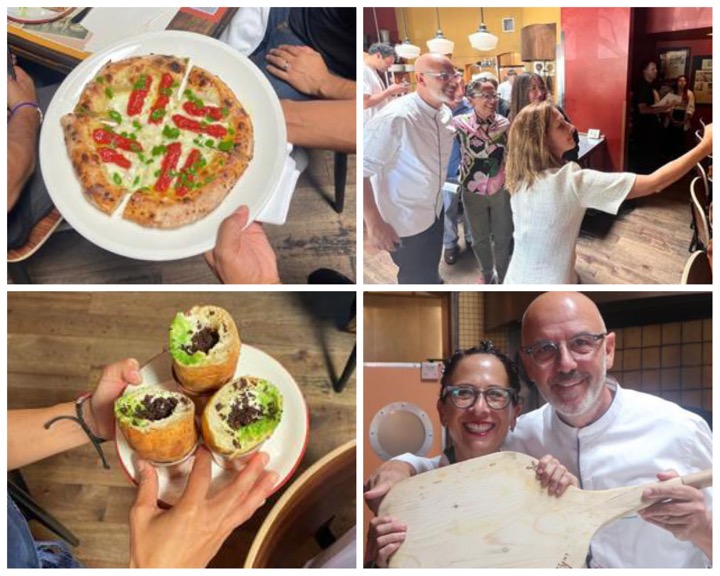 Il menu offerto agli ospiti della giornata includeva vari antipasti preparati dal team guidato da Nancy Silverton e diverse varietà di pizza dal menu di Pepe in Grani, come la Scarpetta, la Ritrovata (dedicata al padre di Franco, Stefano) e la pizza dessert Crisommola del Vesuvio (pizza fritta con ricotta di Bufala Campana DOP al limone, confettura di albicocche del Vesuvio, nocciole tostate, olive nere Caiazzane disidratate e menta fresca).