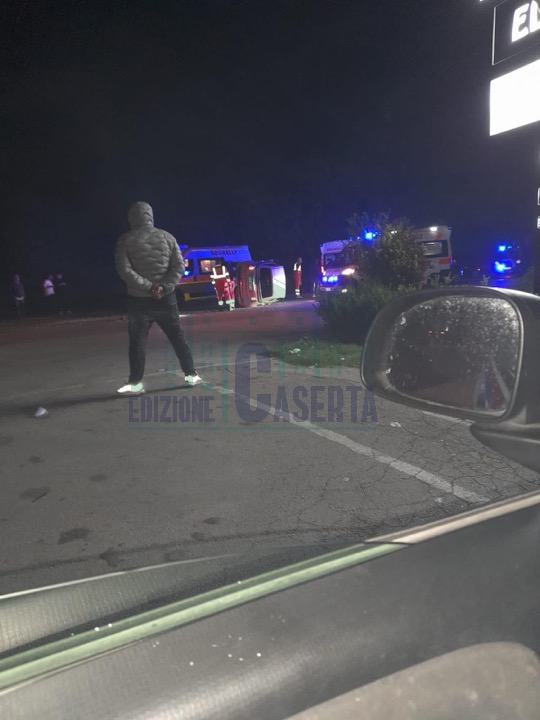 Maddaloni. Terribile incidente a Maddaloni, in via Forche Caudine, sulla rampa della variante. E’ successo poco dopo le 4. Sono rimaste coinvolte due Fiat 500, una nera ed una bianca che si è capovolta. Sul posto 3 ambulanze. Ben quattro i feriti che sono stati trasportati in ospedale.