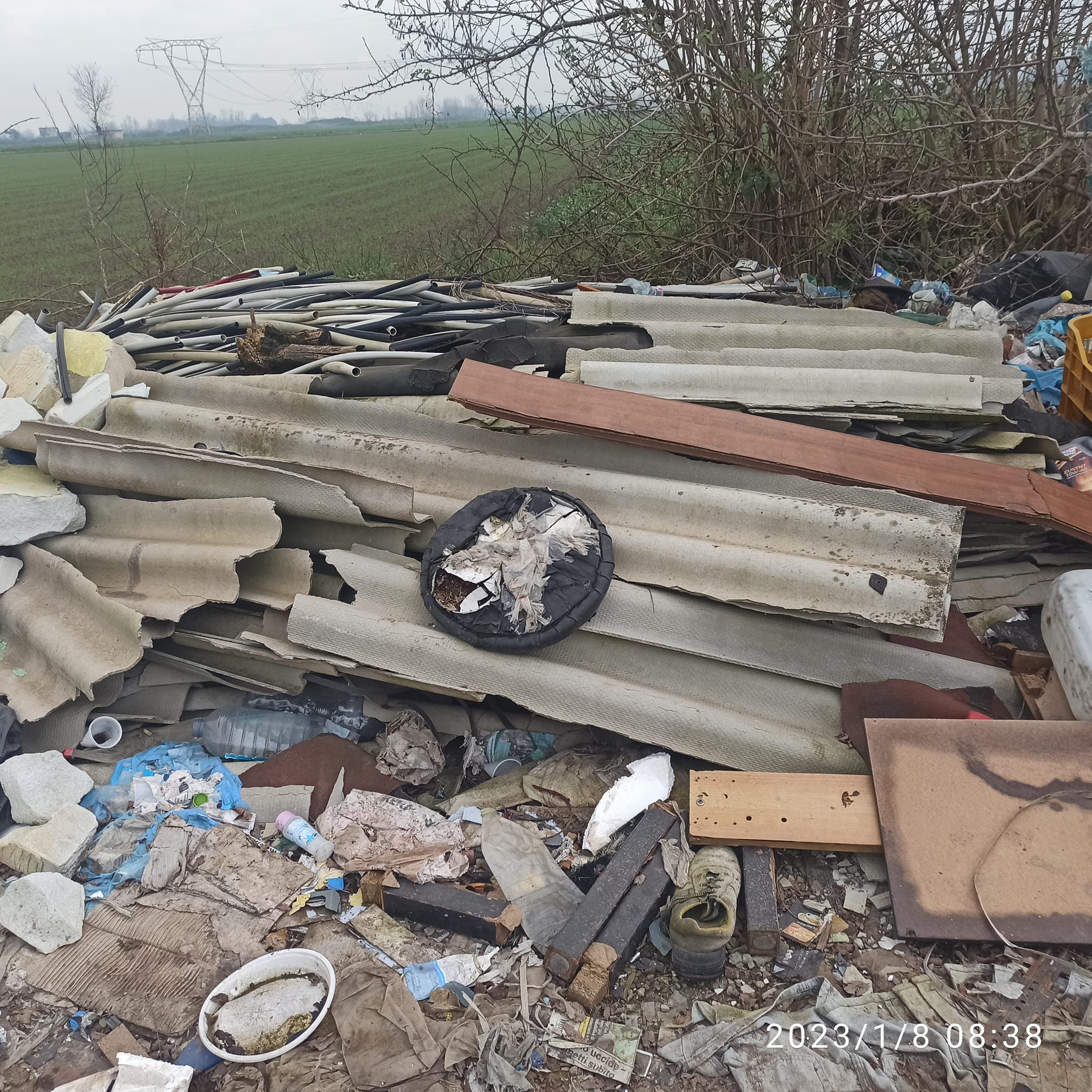 Tale rischio era dovuto alla presenza di cumuli di materiali pericolosi e non, nella fattispecie : materiali in matrice cementizia contenete verosimile amianto, guaine bituminose, parti di carcasse di autovetture, polistirolo, taniche contenete olii esausti, fili sguainati, numerosissimi materiali plastici ,carcasse di frigoriferi ,materassi, vecchi divani, mobilio, vecchi monitor tv, tubi fluorescenti, indumenti, materiali di consumo…etc