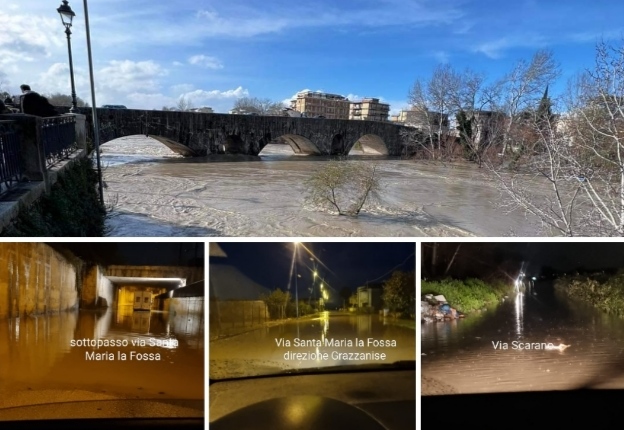 CAPUA. Otto metri di altezza, cinque zone allagate, un rione in ginocchio. Altri due giorni di scuola cancellati (e fanno quattro in totale).