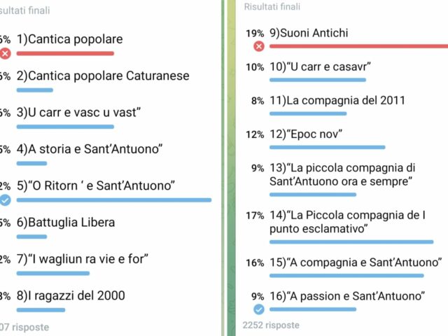 - Cantica Popolare 16% e “A compagnia e Sant’Antuono” 16%