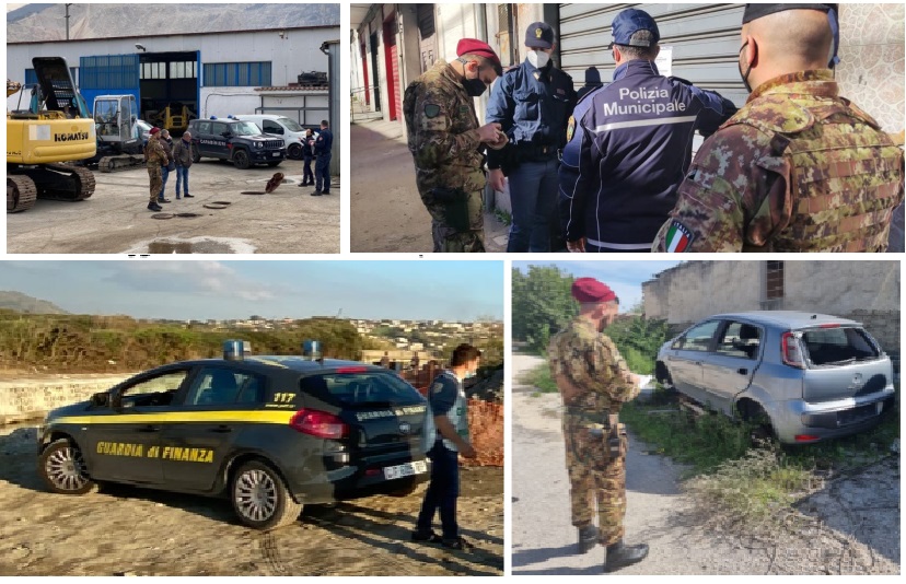 Il giorno 15 febbraio, nei comuni di Marcianise, Capodrise, Macerata Campania e Portico di Caserta, in provincia di Caserta, le attività congiunte hanno visto impiegate pattuglie dei Carabinieri della territoriale e forestali, della Polizia di Stato e della Guardia di Finanza oltre alle competenti Polizie Locali dei Comuni interessati e Polizia Provinciale di Caserta, il personale dell’ARPAC, e ASL di Caserta, in una serie di controlli, a seguito dei quali è stata posta sotto sequestro un’ autocarrozzeria abusiva, elevate ammende per circa 13 mila euro in sanzioni amministrative.