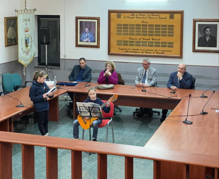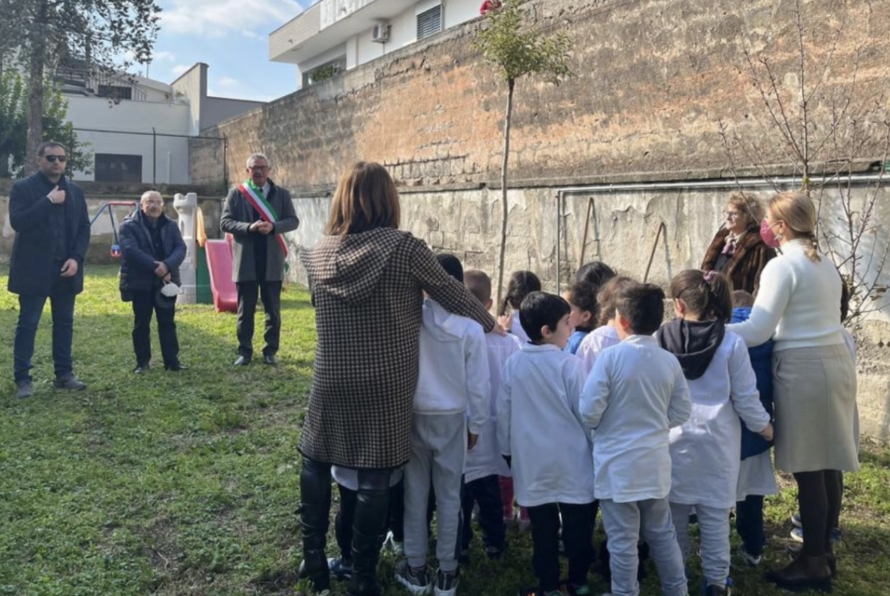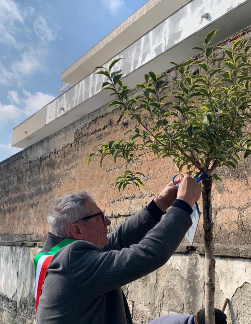 Alla presenza del sindaco Renzo Lillo, dell’assessore Francesco Sorbo, della dirigente scolastica dell’istituto comprensivo ‘Stroffolini’ Angela Massaro, degli alunni e degli insegnanti, il parroco don Felice Provvisto ha benedetto la pianta, sulla quale é stata posta anche una targa in ricordo del geometra Sbarra. Nella serata di ieri, presso la sala consiliare ‘Vescovo Michele Natale’ di Casapulla si é tenuto un incontro dedicato a Mimmo. Oltre al primo cittadino Lillo e all’assessore Sorbo, sono intervenuti la preside Massaro e il segretario generale del Comune di Caserta Salvatore Massi, all’epoca dei fatti segretario comunale di Casapulla. In tanti, anche alcuni colleghi, hanno ricordato Sbarra per la sua grossa disponibilità e professionalità. L’incontro é stato chiuso dagli studenti del corso musicale della ‘Stroffolini’ che hanno suonato e cantato alcuni brani; inoltre, una alunna ha letto un testo dedicato alla memoria di Mimmo.